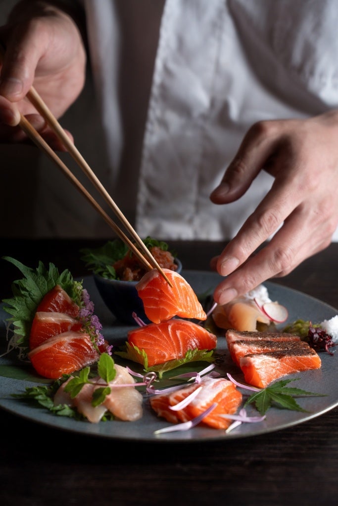 恵まれた自然環境を活かしつつ、生産者の熱意によって育まれた国産の「ご当地サーモン」の中から厳選。さらに、日本が誇る老舗ブランドのスモークサーモンも加えた王道の「刺し」や「焼き」はもちろんのこと、和洋の枠組みを越えて大胆にアレンジした鮭料理の数々を取り揃え、お食事の最初から最後までワクワクするような“鮭体験”をご提供いたします。