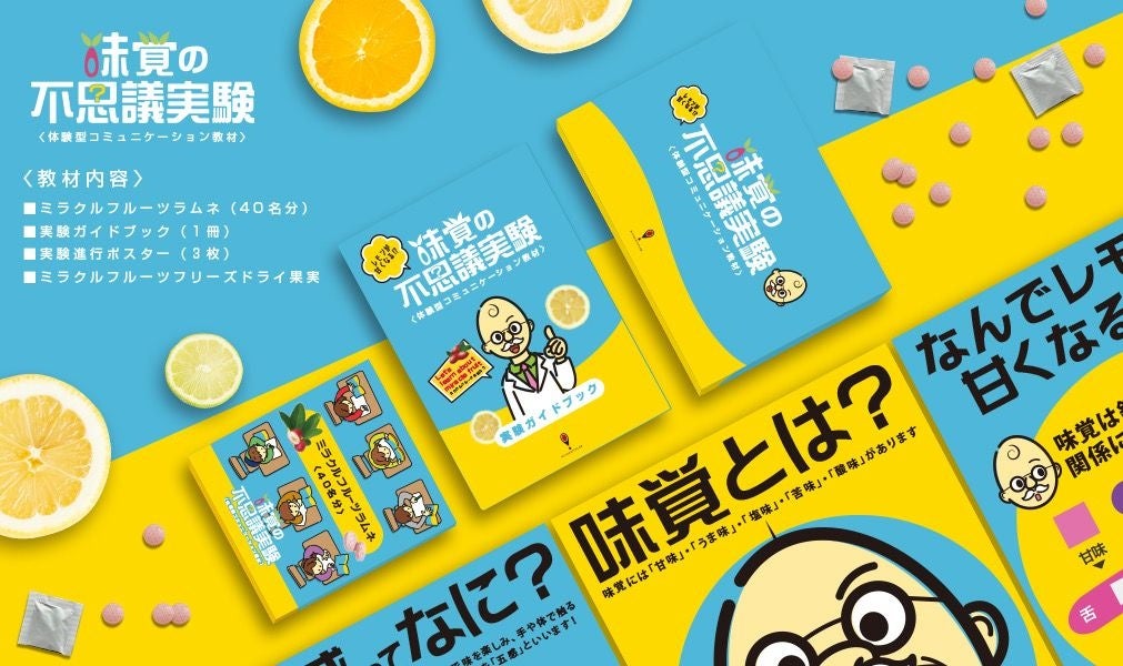 「驚き」「感動」「笑顔」+「学び」をテーマに開発!! 味覚の不思議実験を通じて「五感とは?」「味覚とは?」「なぜレモンが甘くなる?」好奇心を育む体験型教材です。酸っぱい物が甘くなる不思議な果実「ミラクルフルーツ」を活用した実験教材です。子どもから大人まで幅広い方々に楽しんでいただけます。◎ガイドブック:先生の負担軽減◎実験時間:約5分(時短)◎実験進行ポスター:3種類