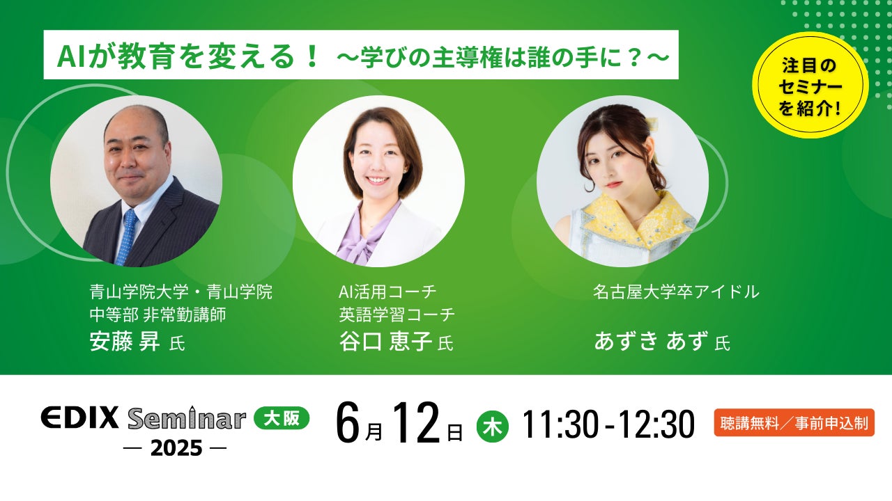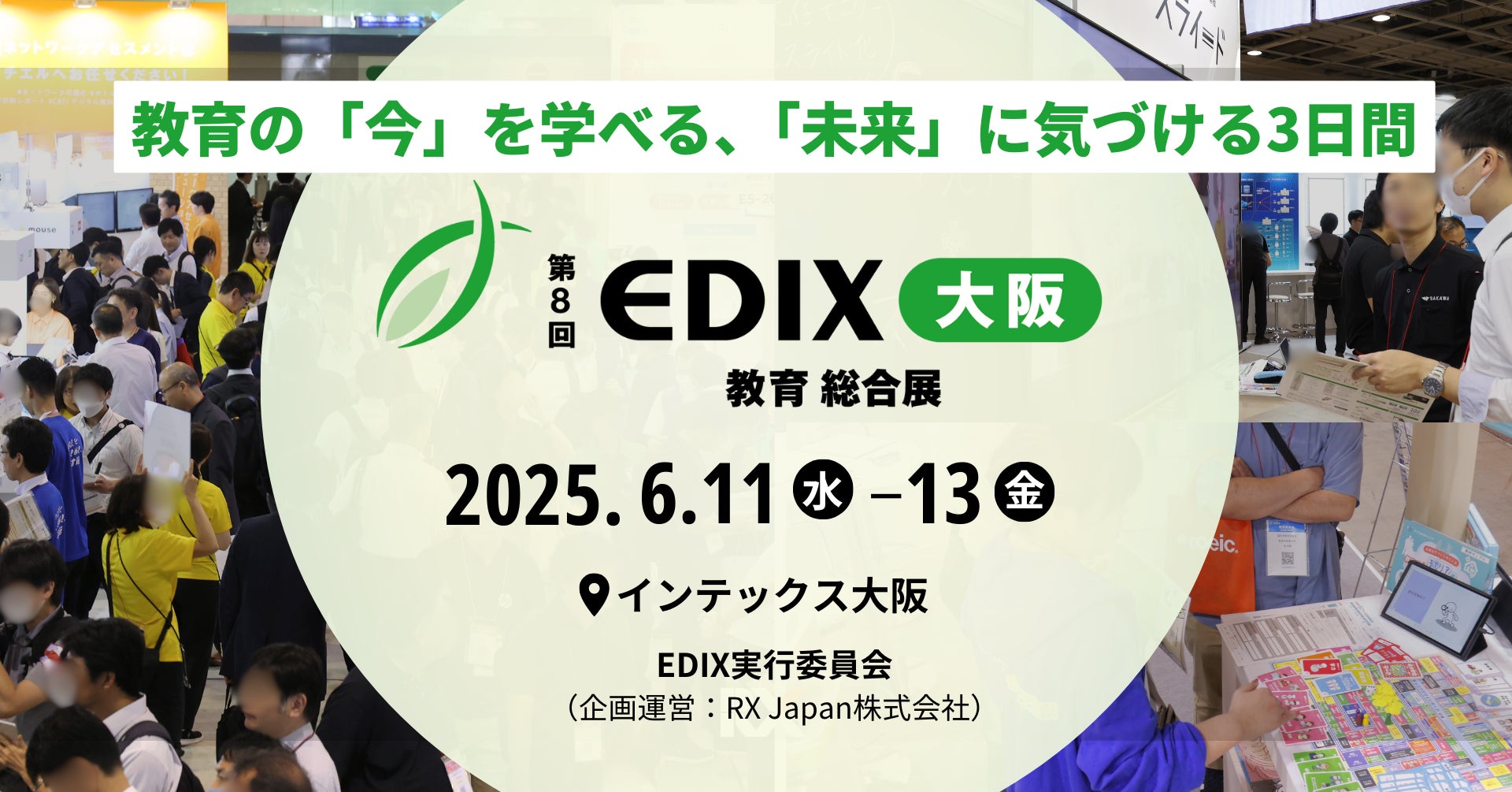 EDIX実行委員会(企画運営:RX Japan株式会社(本社:東京都中央区、代表取締役社長:田中 岳志))は2025年6月11日(水)~13日(金)の3日間、インテックス大阪で「第8回 EDIX(教育総合展)大阪」を開催します。