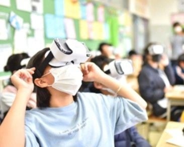 ■教室の中でVRゴーグルを装着して、世界各地への旅に出発!