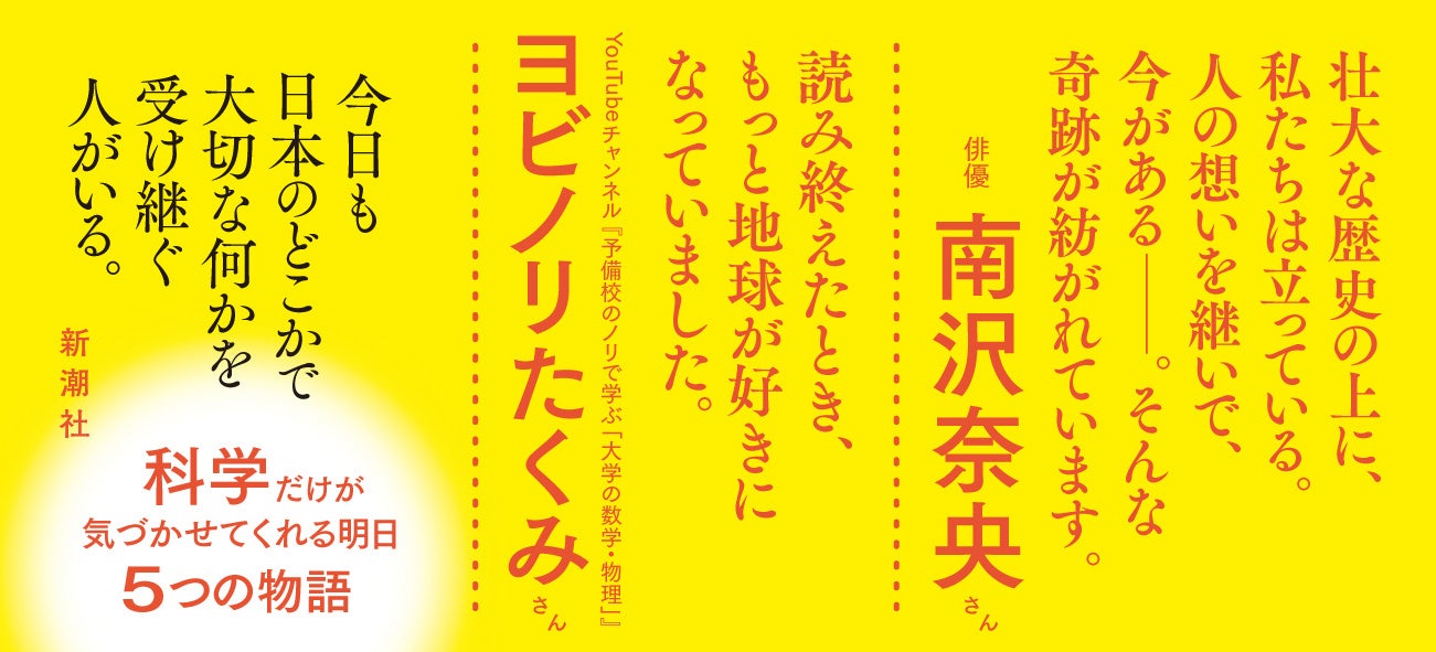 静岡書店大賞、新田次郎文学賞、未来屋書店大賞を受賞した『月まで三キロ』以来、科学が人に与える希望を描き続ける伊与原新さんが今作で描くのは、大切なことを引き受け、伝えることの大切さです。