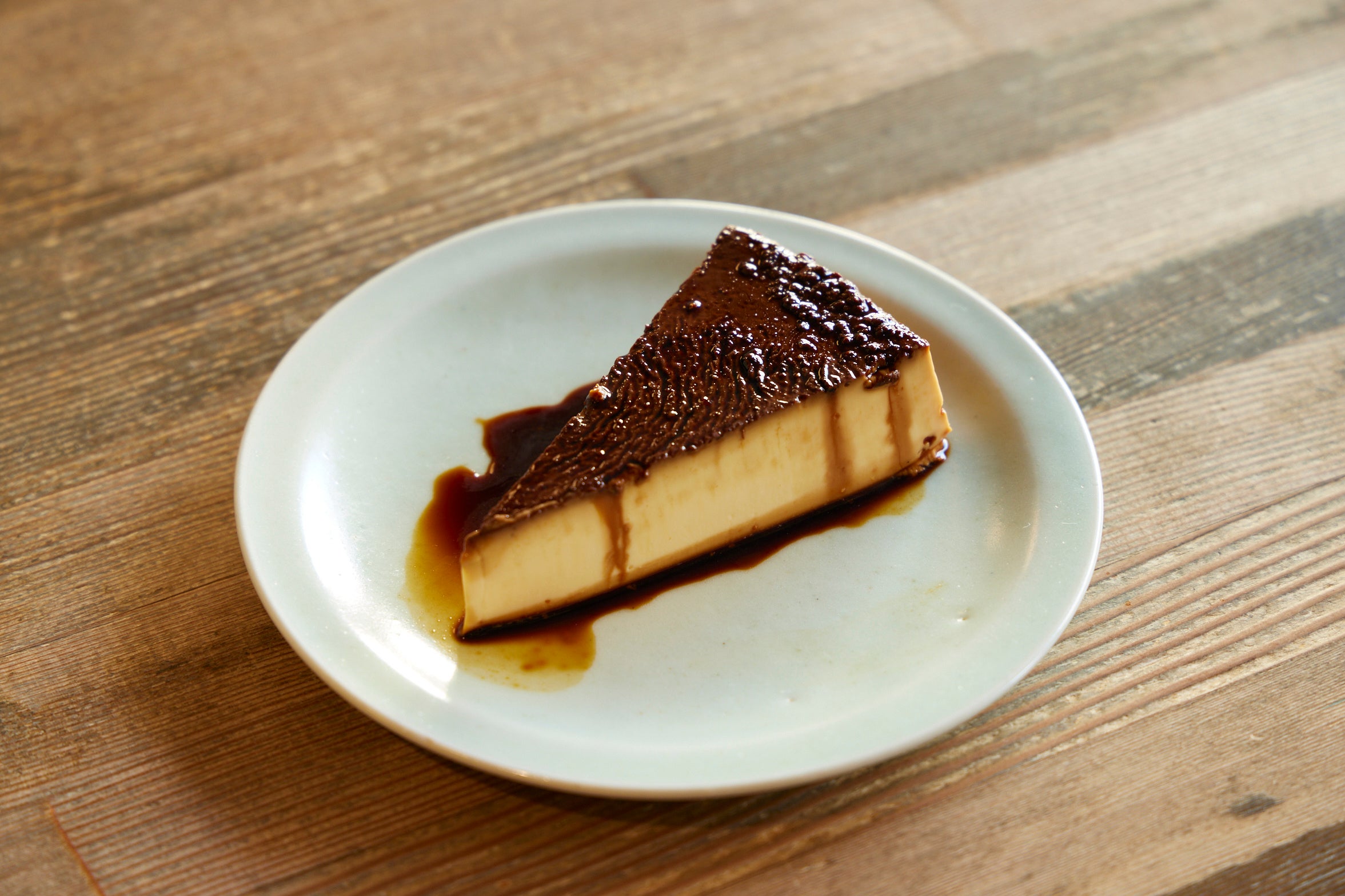- カラメルケーキでカラメルプリンクリームをサンドし、すっきりした卵感のあるプリンに、苦みが効いたカラメルを合わせた東出珈琲店のプリンの味わいを表現しました。