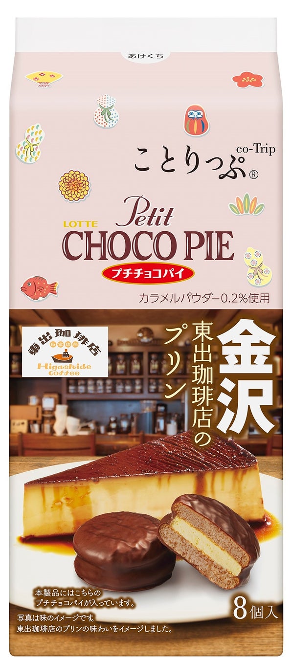 - <昔懐かしのレトロな喫茶店>をテーマに、金沢で愛される喫茶店「東出珈琲店」の人気メニュー「プリン」の味わいをプチチョコパイで表現しました。