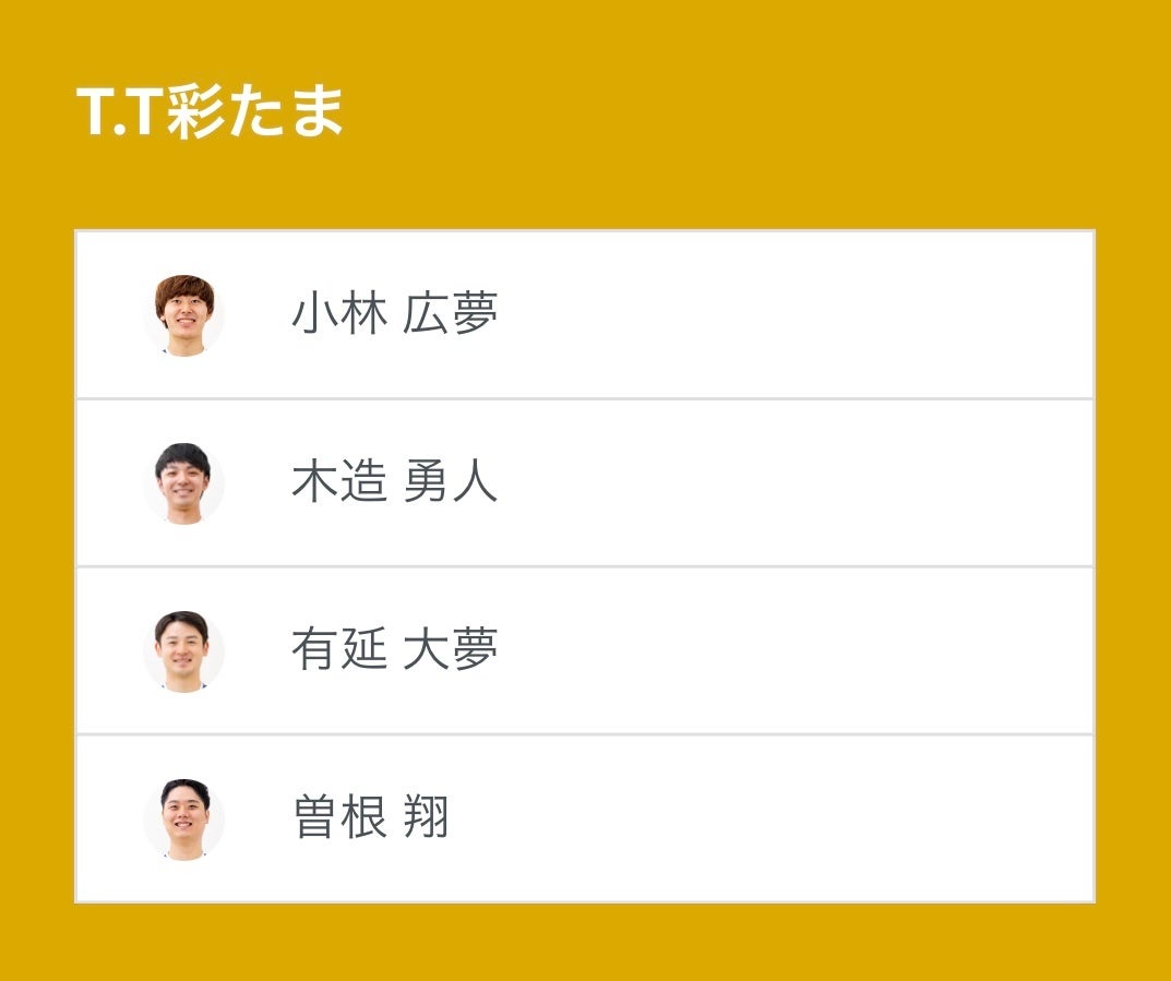 ノジマTリーグ 2024-2025シーズン 公式戦 10月20日開催の「T.T彩たま vs 琉球アスティーダ」のベンチ入り選手を発表いたします。