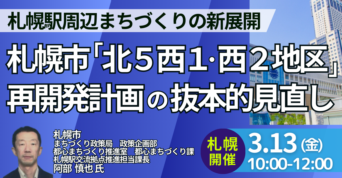 【JPIセミナー】札幌市「“北5西1・西2地区” 再開発計画の抜本的見直しと札幌駅周辺まちづくりの新展開」3月13日(金)<札幌開催>