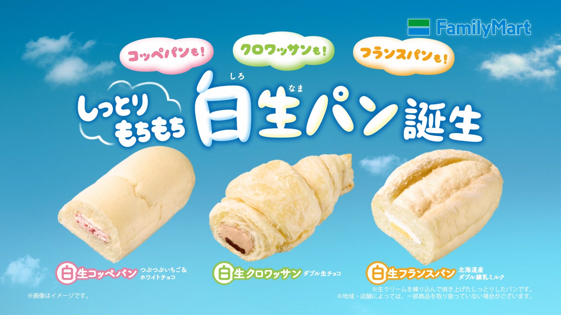 株式会社ファミリーマート(本社:東京都港区、代表取締役社長:細見研介)は、継続して取り組んでいる5つのキーワードのうち「もっと美味しく」、「『あなた』のうれしい」の一環として、「ファミマルBakery(ファミマルベーカリー)」から累計販売数2億6000万個突破した(※)「生パン」シリーズの「白生(しろなま)パン」から「白生コッペパン(つぶつぶいちご&ホワイトチョコ)」、「白生クロワッサン(ダブル生チョコ)」、「白生フランスパン(北海道産ダブル練乳ミルク)」各156円(税込168円)の3種類を3月25日(火)から全国のファミリーマート約16,300店で発売いたします。