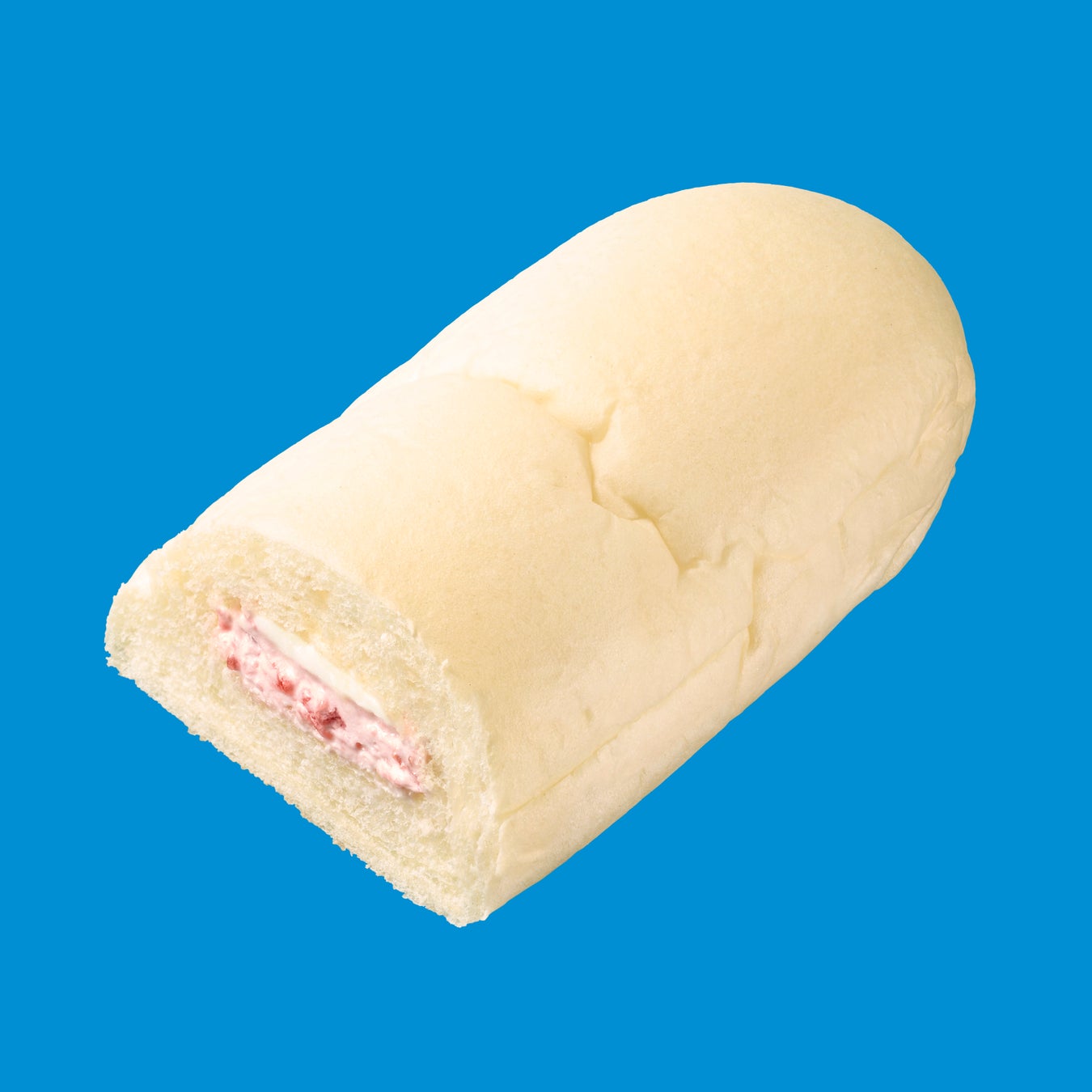 【内容】生クリームを加えたしっとりもちもちとした白生コッペパンに、つぶつぶいちご果肉入りのホイップとホワイトチョコクリームをサンドしました。