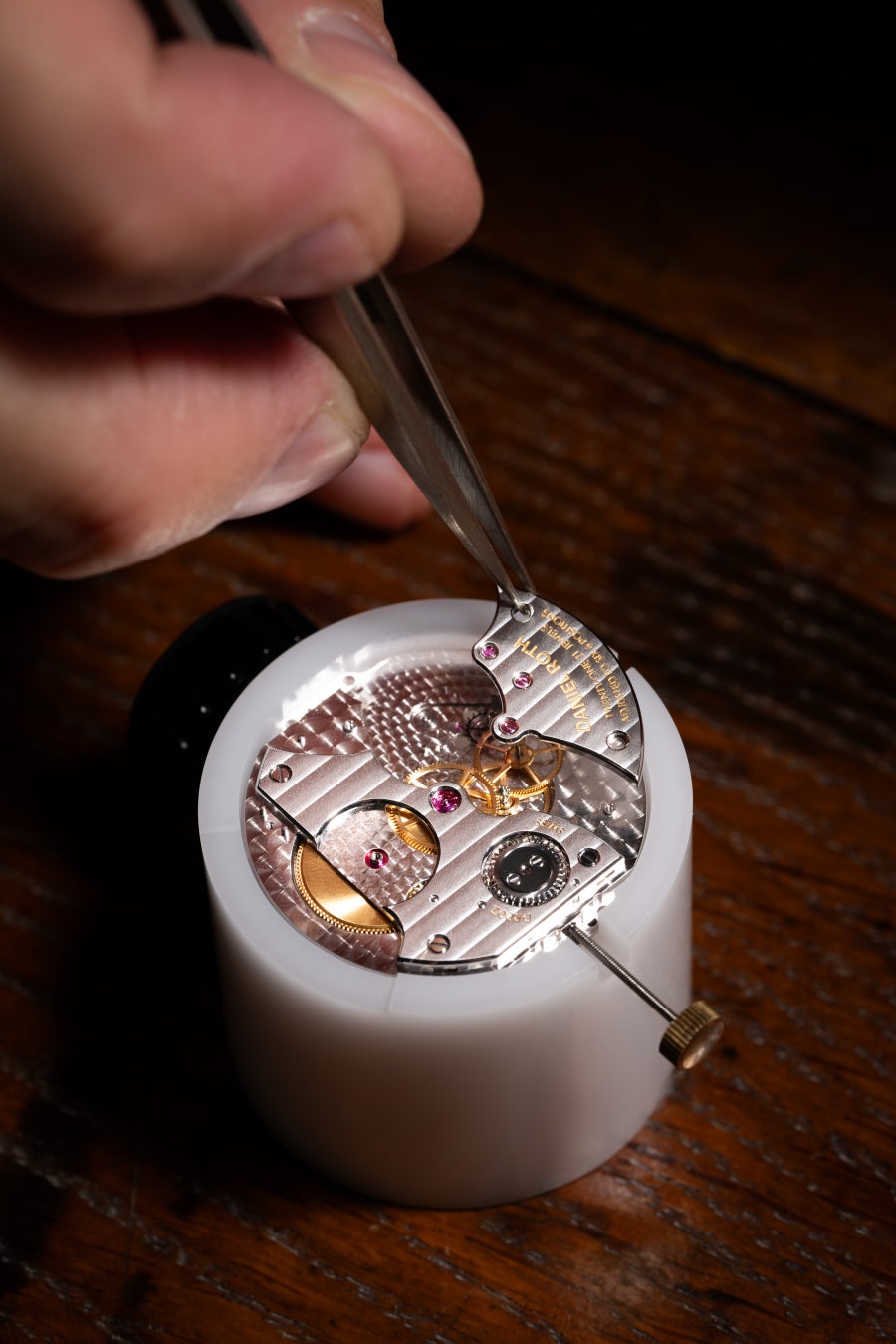 「友人としてもウォッチメーカーとしても、伝統的なハイウォッチメイキングに傾けるダニエルの情熱を理解しているので、DR002を製作する際は、彼のアプローチを尊重したかった」と、ミシェル·ナバスとエンリコ·バルバシーニは説明。「だから、DR002には、香箱のためのスティール製の巻き上げ爪のような伝統的なハイウォッチメイキングの特徴を確実に取入れた」。