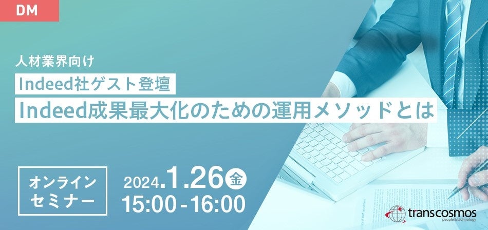 【トランスコスモスオンラインセミナー】<人材業界向け>Indeed社ゲスト登壇Indeed成果最大化のための運用メソッドとは。を1/26(金)に開催