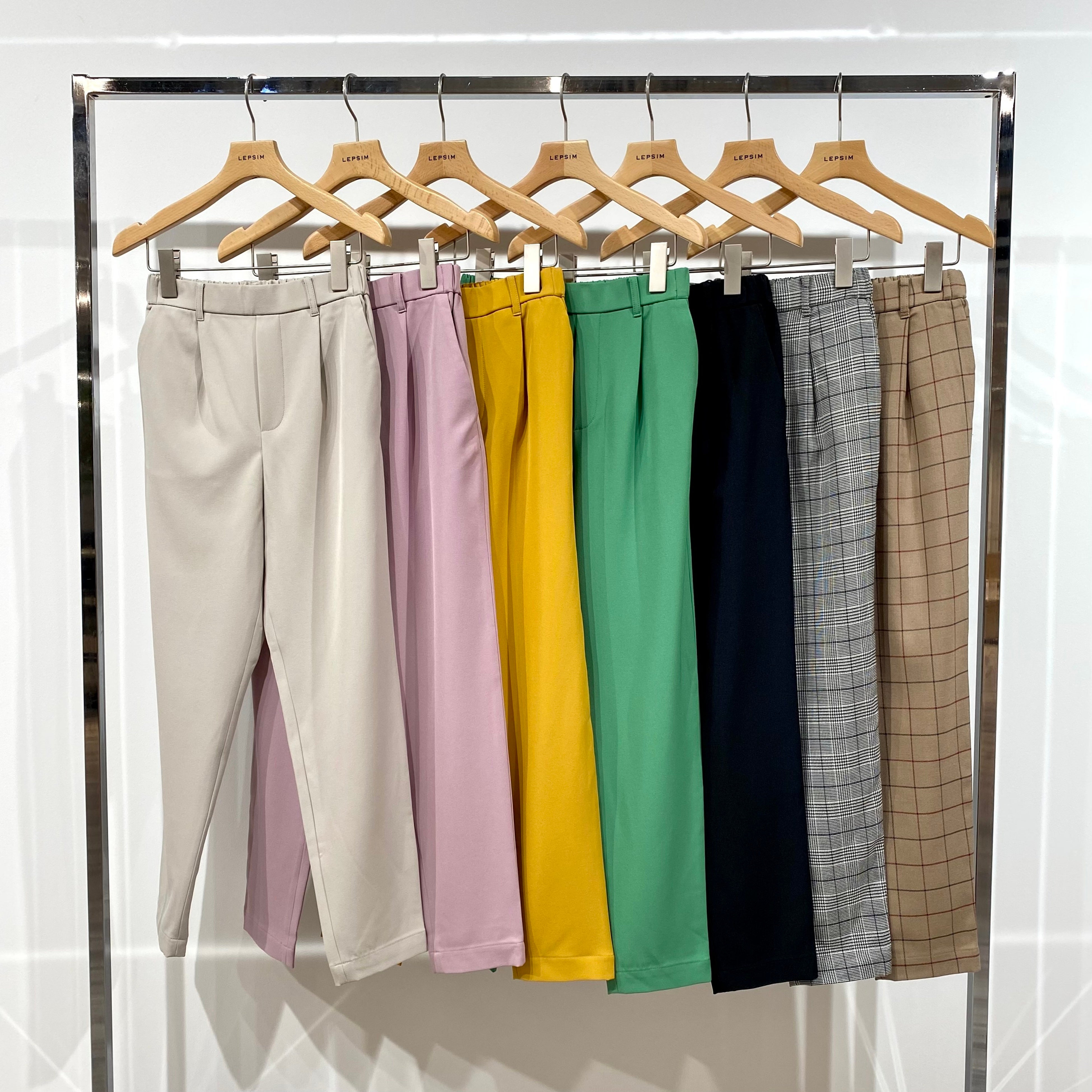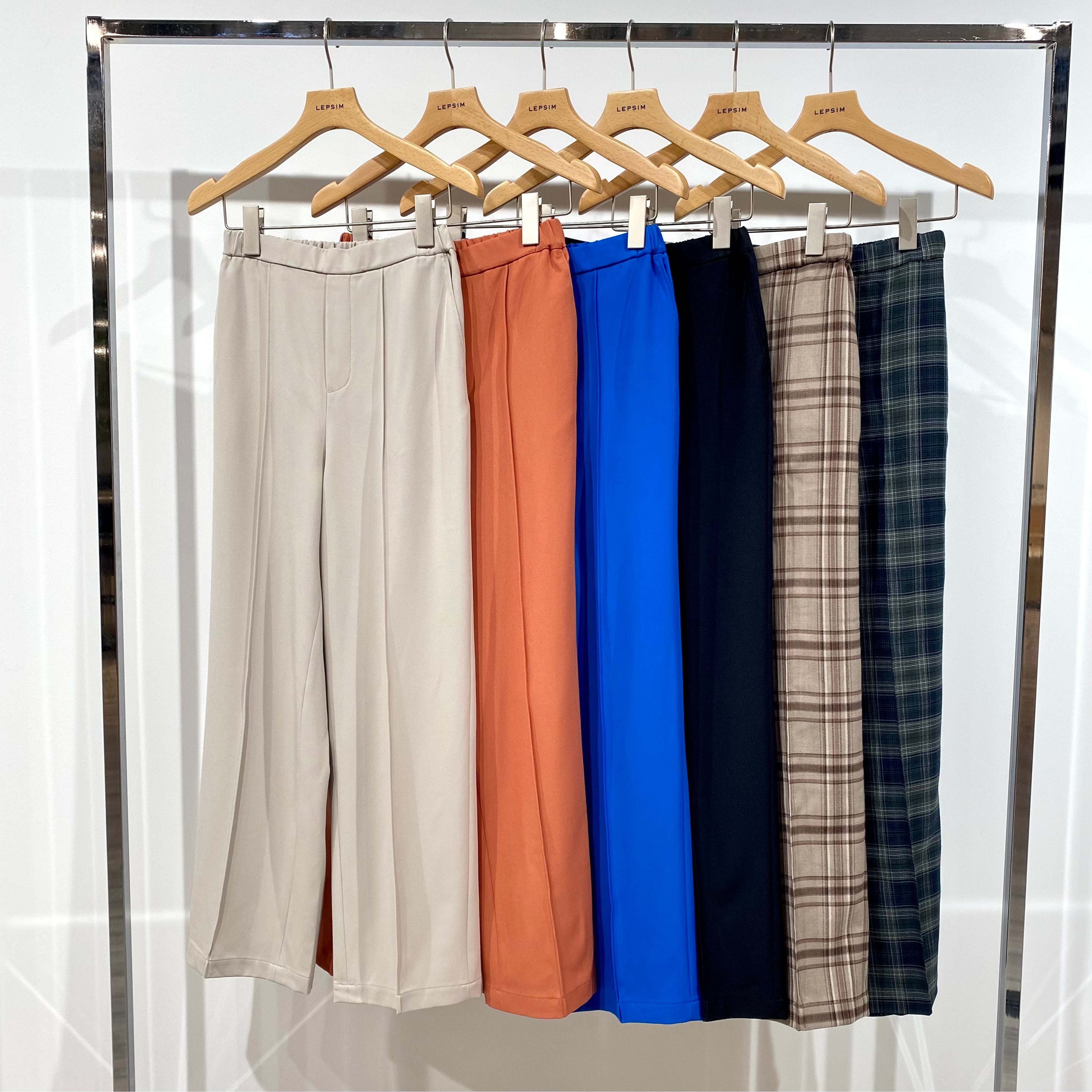 太すぎず、細すぎない絶妙なストレートシルエットに、センターに施したピンタックデザインで脚長効果抜群。ピンタックはアイロンをかけなくてもキープされるのでお手入れが簡単なのも嬉しいポイントです。ウエストは内紐が通っているのでサイズ調整が可能です。ゴム仕様で動きやすく、お仕事からプライベートまで幅広く使いやすいパンツです。