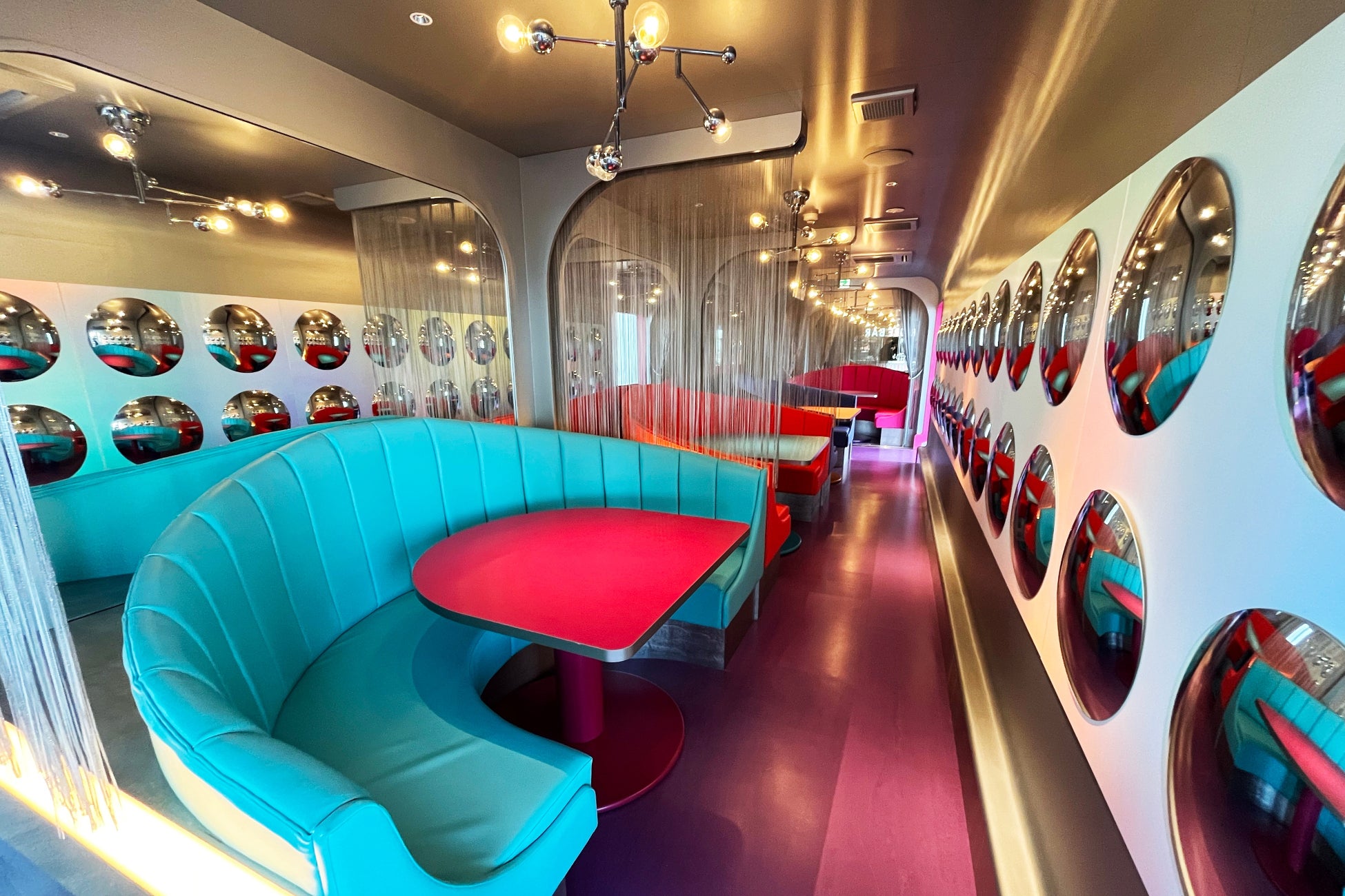 「京都ダイナー」をテーマに、ダイナーならではのポップさと、京都ならではの食材や文化を取り入れた全7品のコース。不思議なアート体験空間となった先頭車両も自由に見学いただけます。