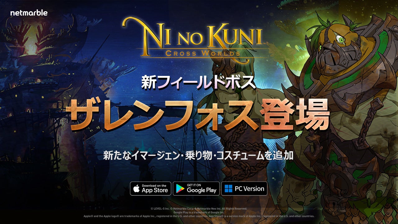 ネットマーブルは、レベルファイブとタッグを組みサービスを提供しているファンタジーアートRPG『二ノ国:Cross Worlds』(略称:ニノクロ)において、本日8月25日(木)に、新フィールドボス「ザレンフォス」や新イマージェン、新乗り物、新コスチュームなどを追加するアップデートを実施いたしました。