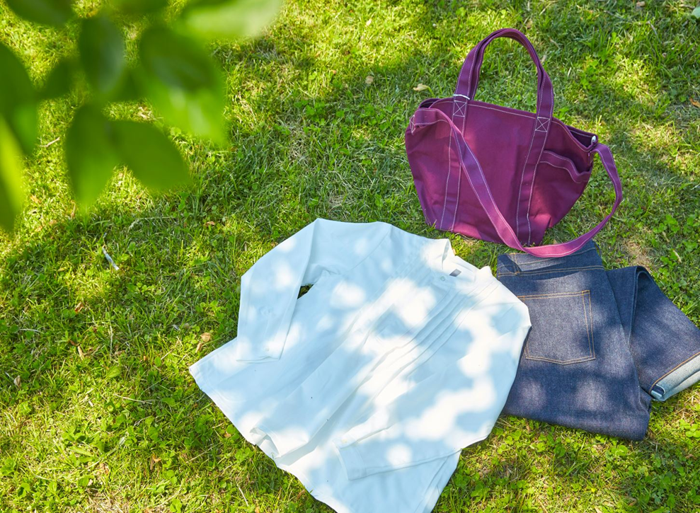 国産ジーンズ発祥の地でもある「岡山県倉敷市児島」。古くから繊維の街として知られてきました。アパレルの生産工程の中で使いきれなかった生地をアップサイクルして質の高い商品を作り上げています。シンプルで飽きのこないデザイン、着心地にこだわったシルエット、着る人にとっての日々が少し特別になる服づくりを心がけ展開しています。デニムを使った衣類や、帆布を使ったカバンなどを製造しているブランドです。