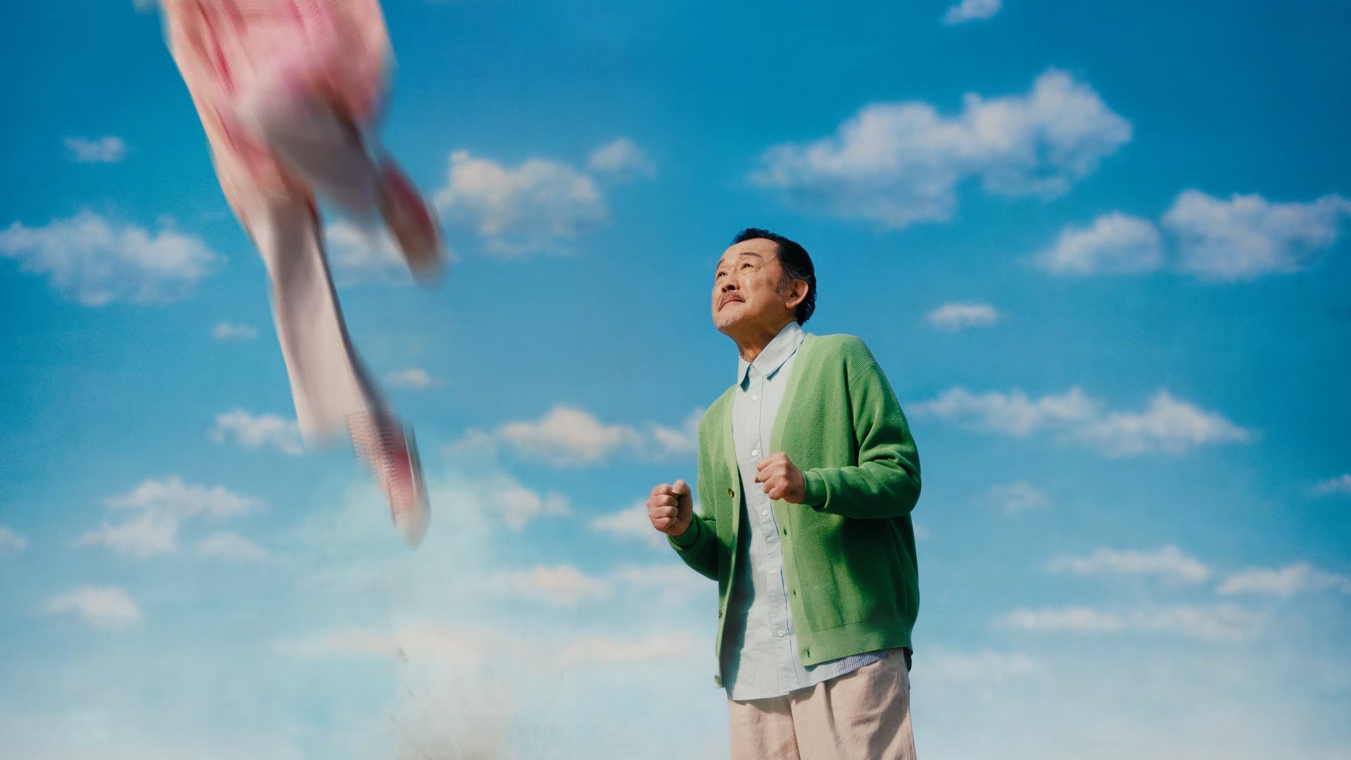 吉田鋼太郎さんと八木莉可子さんが空を眺めていると白い〇〇を発見!?八木さんは世紀の大ジャンプを披露!新TVCM「白生パン誕生」篇3月25日(火)から放映開始