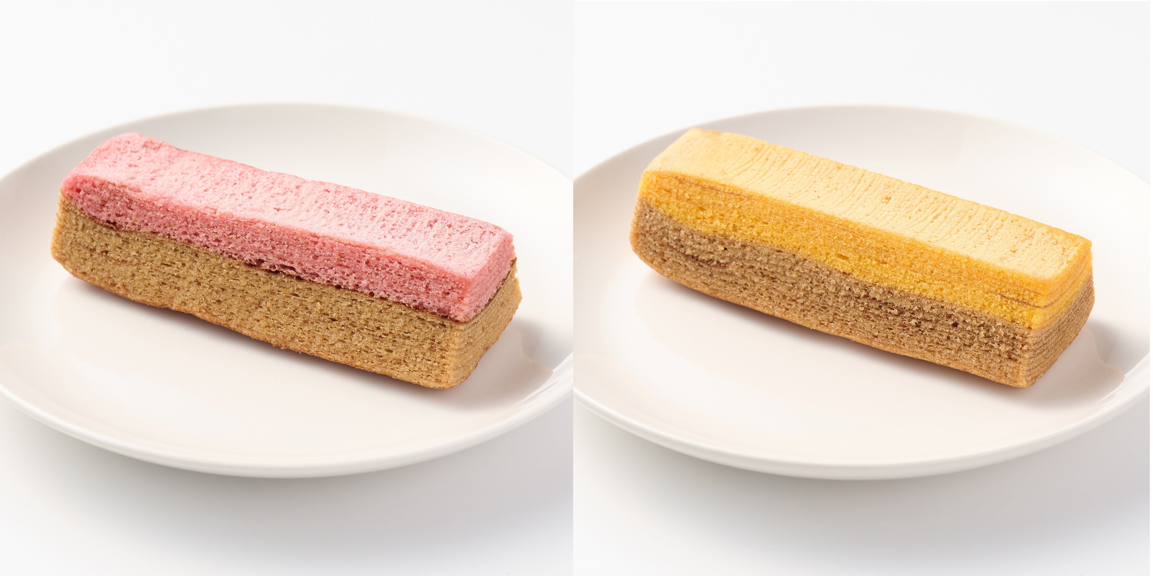 今回発売する2種のバウムは、ローソンのオリジナル商品に使用されている「ブラン」※1を練りこんだ生地に、フルーツ生地を重ねて2層仕立てにしました。フルーツ生地には、ブランの香ばしい穀物の香りと相性の良い、ストロベリーとオレンジを採用、それぞれストロベリーソースとオレンジピールを生地に練りこんでいます。甘酸っぱく爽やかな味わいのため、おやつだけでなく朝ごはんとしてもおすすめです。