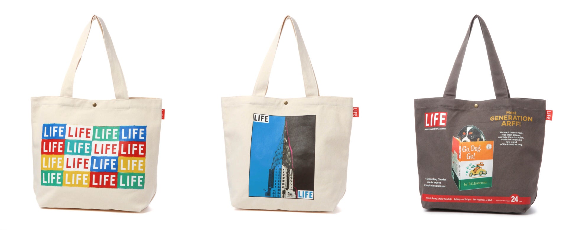 今回のコラボアイテムは、そんな『LIFE』の象徴的なロゴと、誌面で起用された写真の中から、動物や街の写真をピックアップし、コラージュやグラフィック化、それらのアートワークをニコアンドで人気アイテムのビニール傘やトートバッグなど雑貨に施しました。『LIFE』の素敵なビジュアルとニコアンドのデザインアイデアを掛け合わせたオリジナリティーのあるアイテムを展開しています。