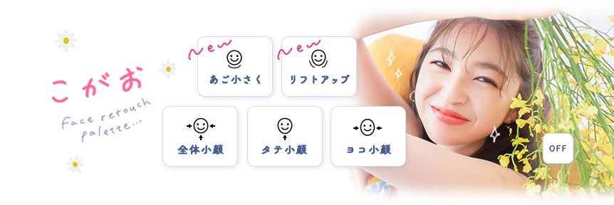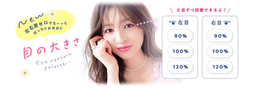 目の大きさは片目ずつ調整でき、 なりたい印象に合わせて小顔の種類も選択可能