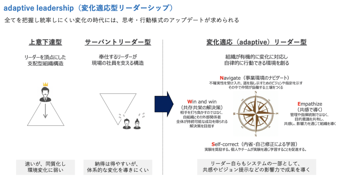 ・「Adaptive Leadership(適応課題解決型、複雑な環境下でも適応力の高いリーダーシップ)」の学習
