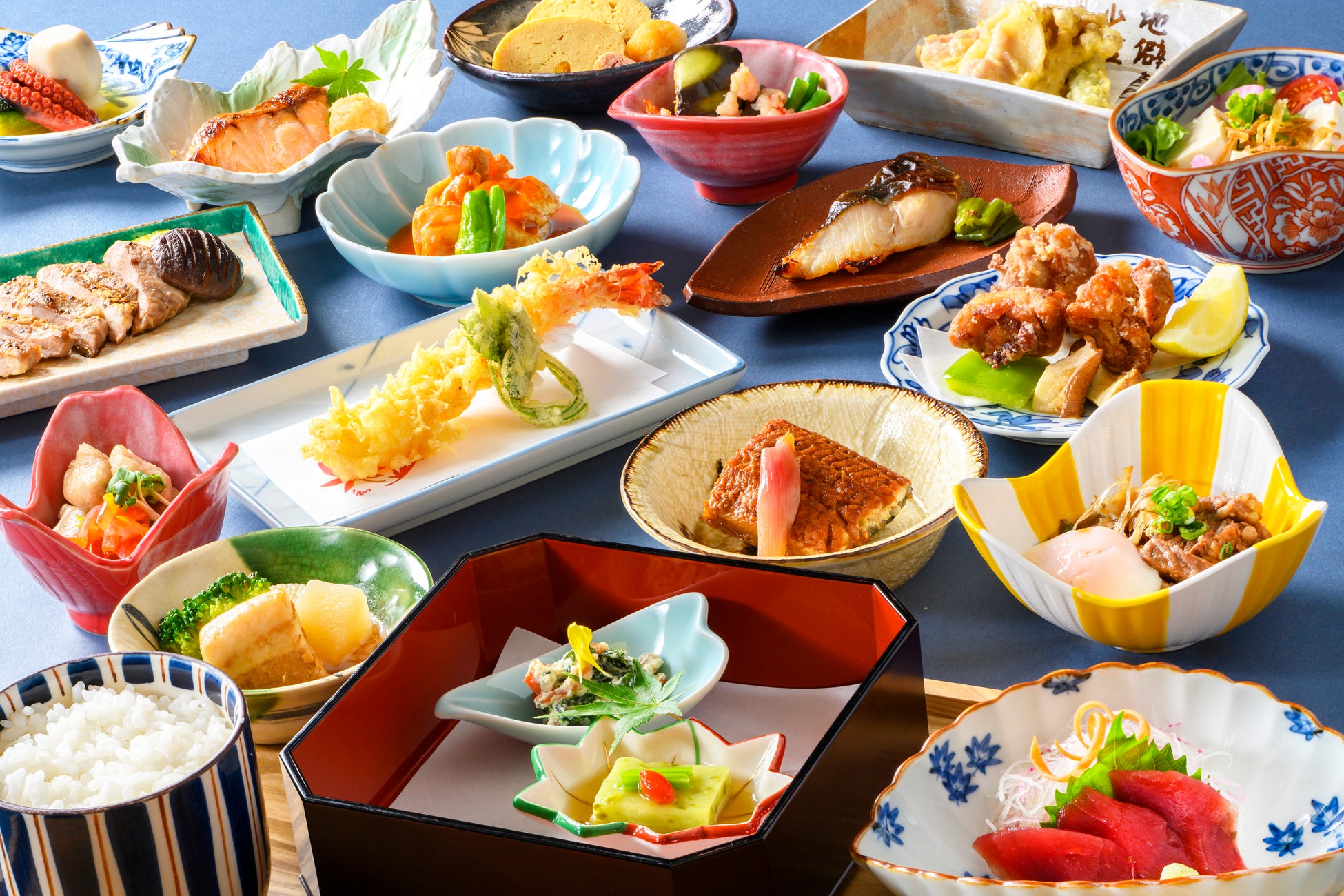 和風バルサミコソースで味わう神戸ポークやサーモンの塩麹焼き、いちじくと野菜の天ぷらなど、丁寧に仕上げた季節感あふれる本格的な日本料理をお好きなだけご賞味いただけます。