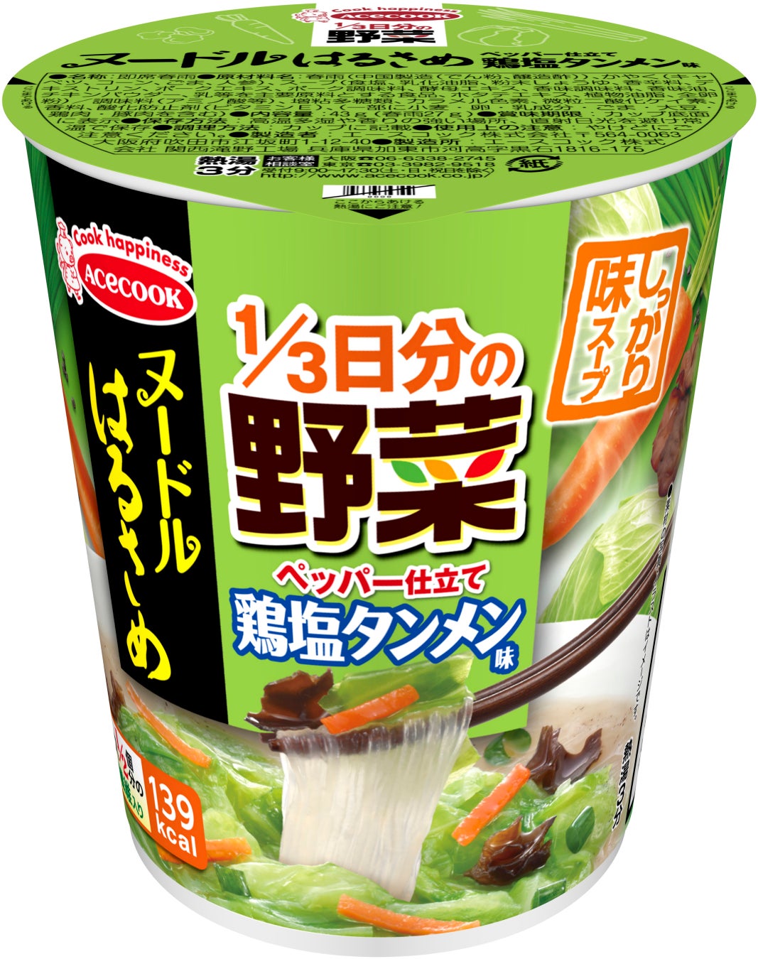 ヌードルはるさめ 1/3日分の野菜 鶏塩タンメン味 新発売