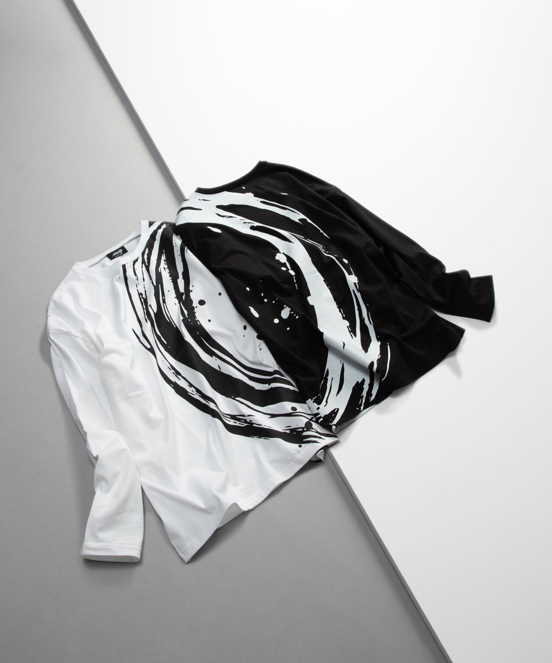 今回のコラボアイテムは、月をモチーフに円を描いたグラフィックを前面に大胆にプリントし、背面にも同様のプリントを施すことで、前後合わせて月のデザインが完成する仕様となっています。