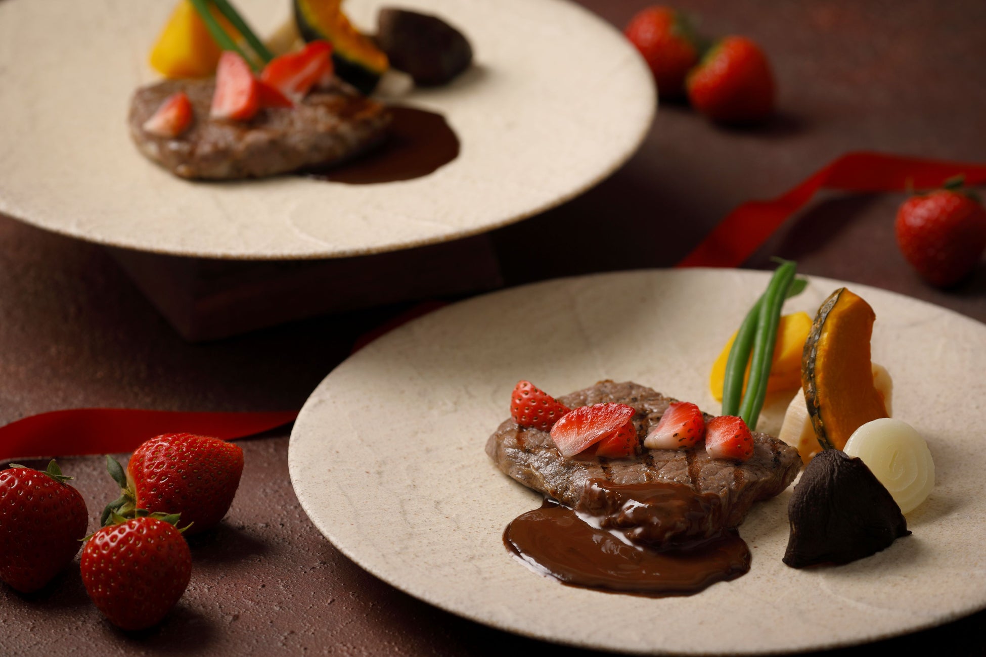 和歌山県オリジナル品種の苺「まりひめ」の魅力を余すことなく味わえるハイティー付きの宿泊プランです。ハーブやジビエを合わせた個性豊かな6品のセイボリーに、南高梅や王道のチョコレートを組み合わせた華やかな5品を揃えました。メインには牛ロースとまりひめのグリルを季節野菜とともにご用意し、様々な組み合わせでまりひめの酸味と甘みをお楽しみいただけます。温泉付き客室での滞在とともに、南紀白浜の冬を五感で楽しむ贅沢なひとときをお過ごしください。