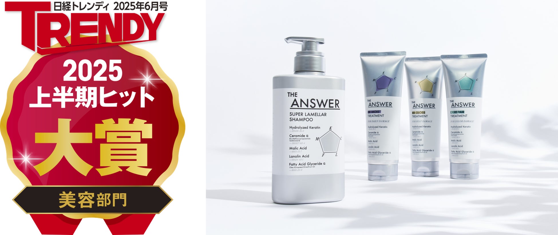 花王株式会社のヘアケアブランド「THE ANSWER(ジアンサー)」は、「日経トレンディ」2025年6月号(2025年5月2日発売)の「2025年上半期ヒット大賞&下半期ブレイク予測」にて、「美容部門 大賞」を受賞しました。