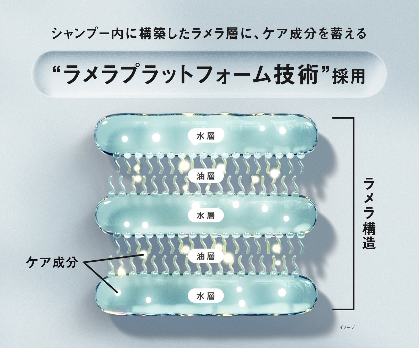 シャンプー内に構築したラメラ層に、ケア成分を蓄える“ラメラプラットフォーム技術”を採用
