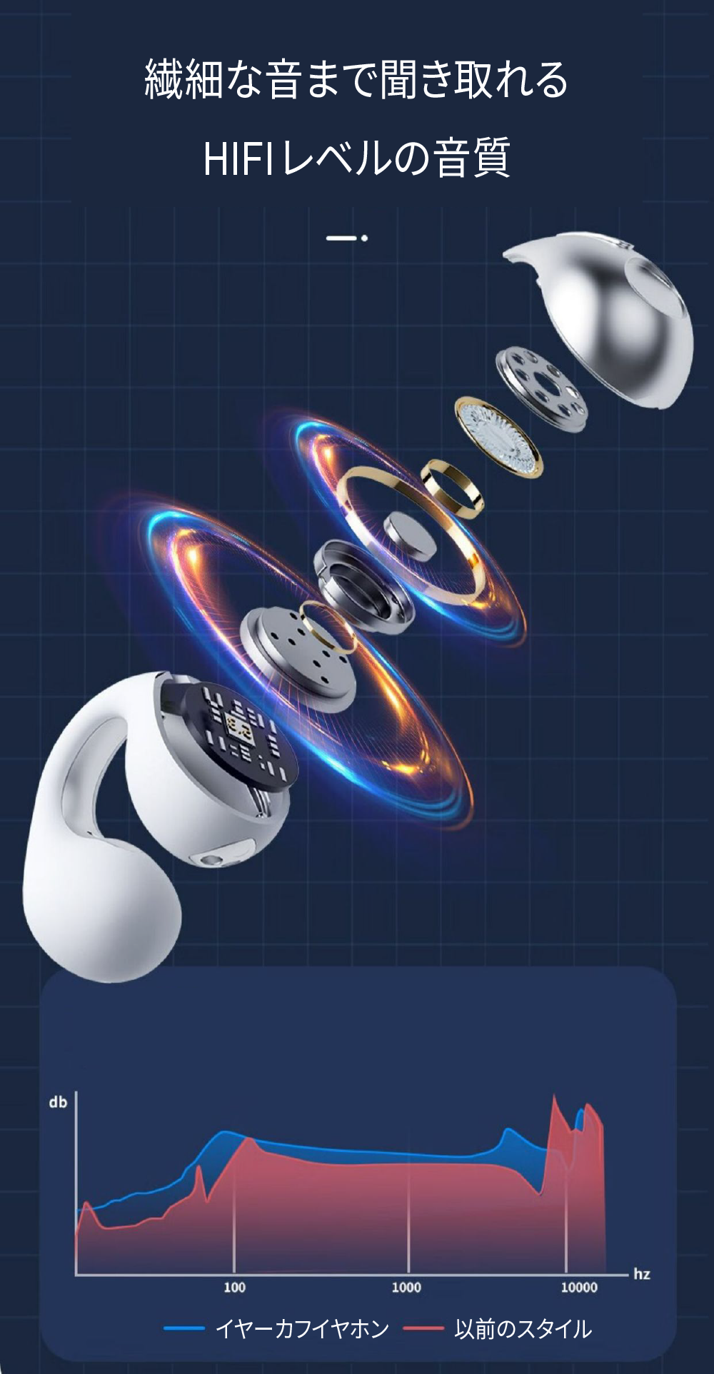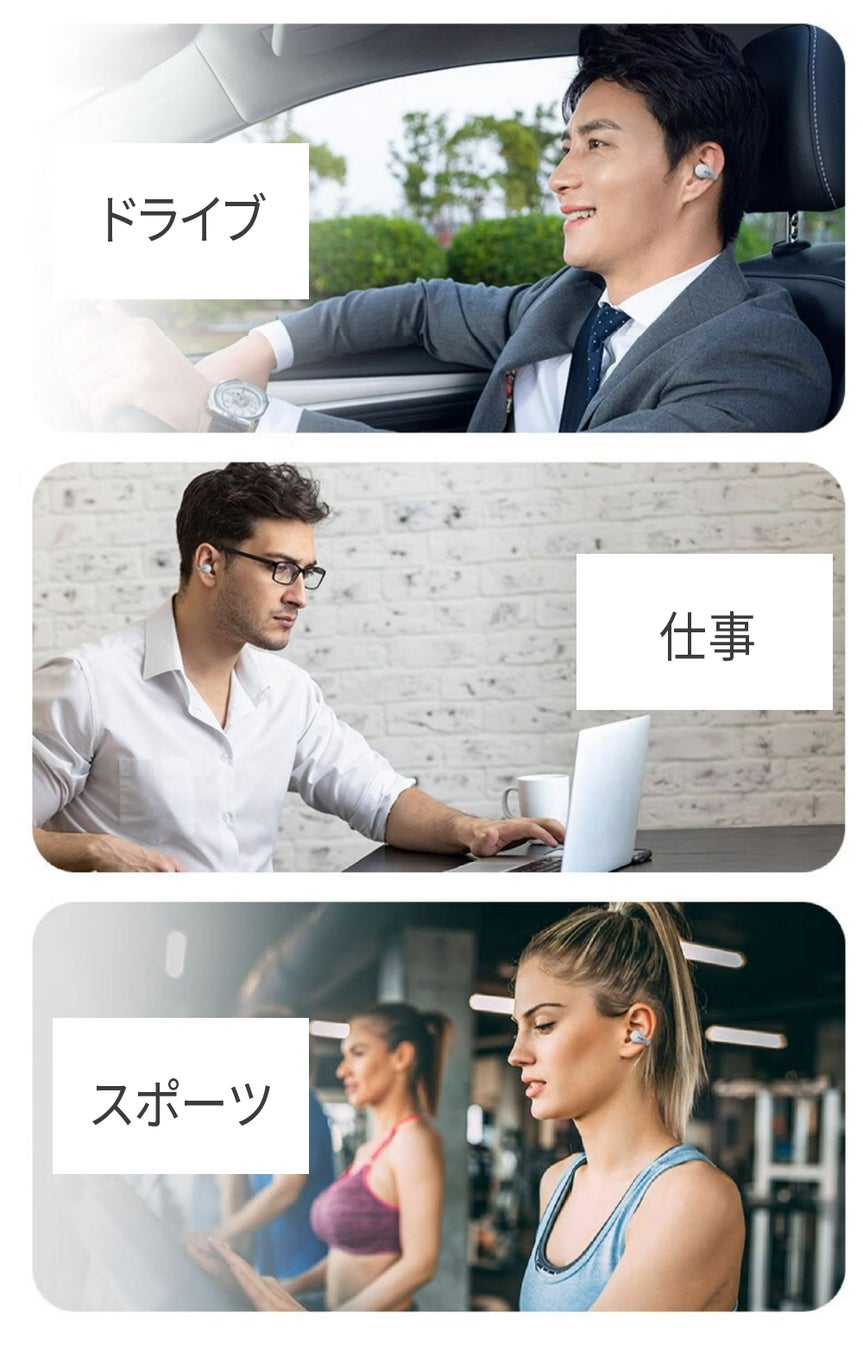 - 耳をふさがないワイヤレスイヤホン