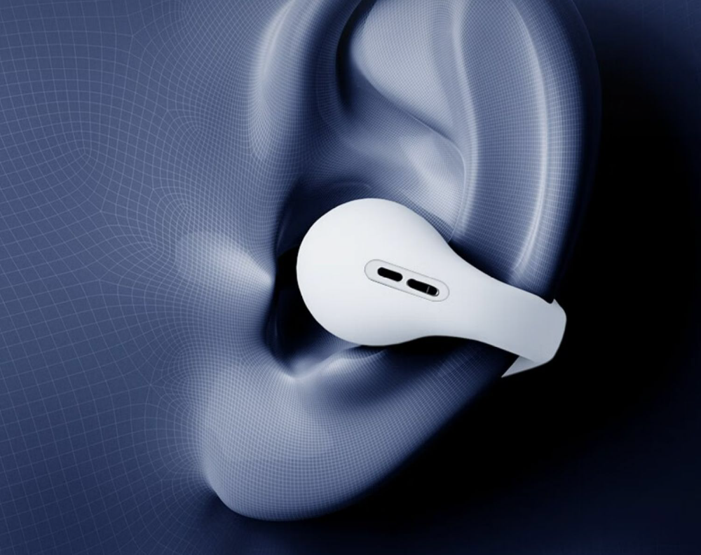 GeePods-V(ジーポッズヴイ)は、オープンエアー式ワイヤレスイヤホン。耳を塞がないため、音楽を聴きながら周りの音も聞こえる便利なイヤホンです。