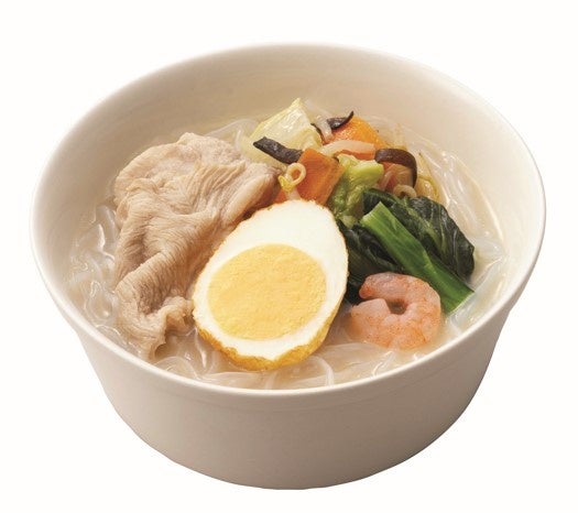 【内容】熊本県産ブランド豚「りんどうポーク」を使用し、鶏白湯ベースの具材感ある春雨スープに仕立てました。熊本県の郷土料理 太平燕(タイピーエン)をイメージし、揚げたゆで玉子と炒め野菜を合わせました。
