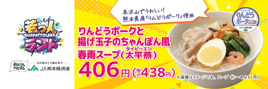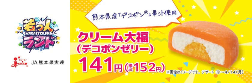 株式会社ファミリーマート(本社:東京都港区、代表取締役社長:細見研介)は継続して取り組んでいる5つのキーワードの1つである「『あなた』のうれしい」の一環として、熊本県経済農業協同組合連合会(本会:熊本県熊本市、代表理事会長:丁道夫、以下JA熊本経済連)と、熊本県果実農業協同組合連合会(本会:熊本県熊本市、代表理事会長:橋本明利、以下JA熊本果実連)と株式会社テレビ熊本(本社:熊本県熊本市、代表取締役社長:河津延雄、以下テレビ熊本)の人気テレビ番組「若っ人ランド(わかっとランド)」とコラボした商品3種類を2025年3月25日(火)から九州地方と山口県(一部店舗)のファミリーマート約1,100店で発売いたします。
