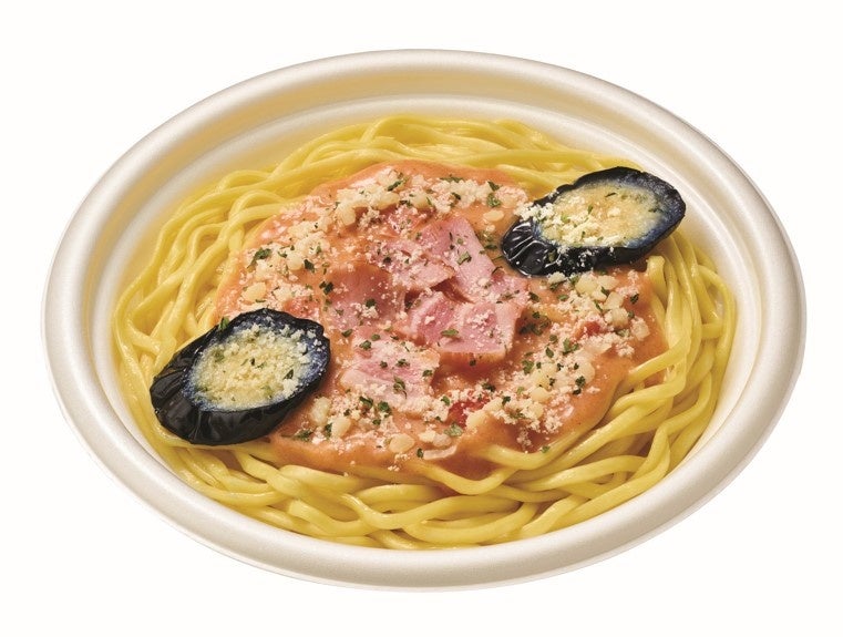 【内容】熊本県産「はちべえトマト」のピューレと角切りトマトを使用した、トマトクリームソース仕立ての生パスタです。ベーコンソテーと、素揚げした熊本県産「なす」をトッピングしました。
