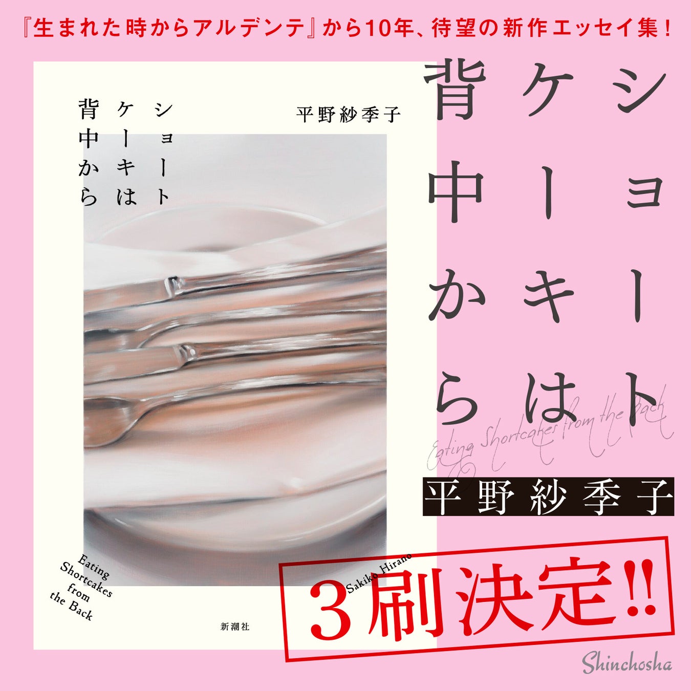 平成生まれの食文化を世に知らしめた衝撃のデビュー作『生まれた時からアルデンテ』から10年、著者初となるテキストメインのエッセイ集『ショートケーキは背中から』を8月29日(木)に新潮社から刊行。好評につき、9月10日(火)に3刷が決定いたしました。3刷は全国書店に配本される予定です。
