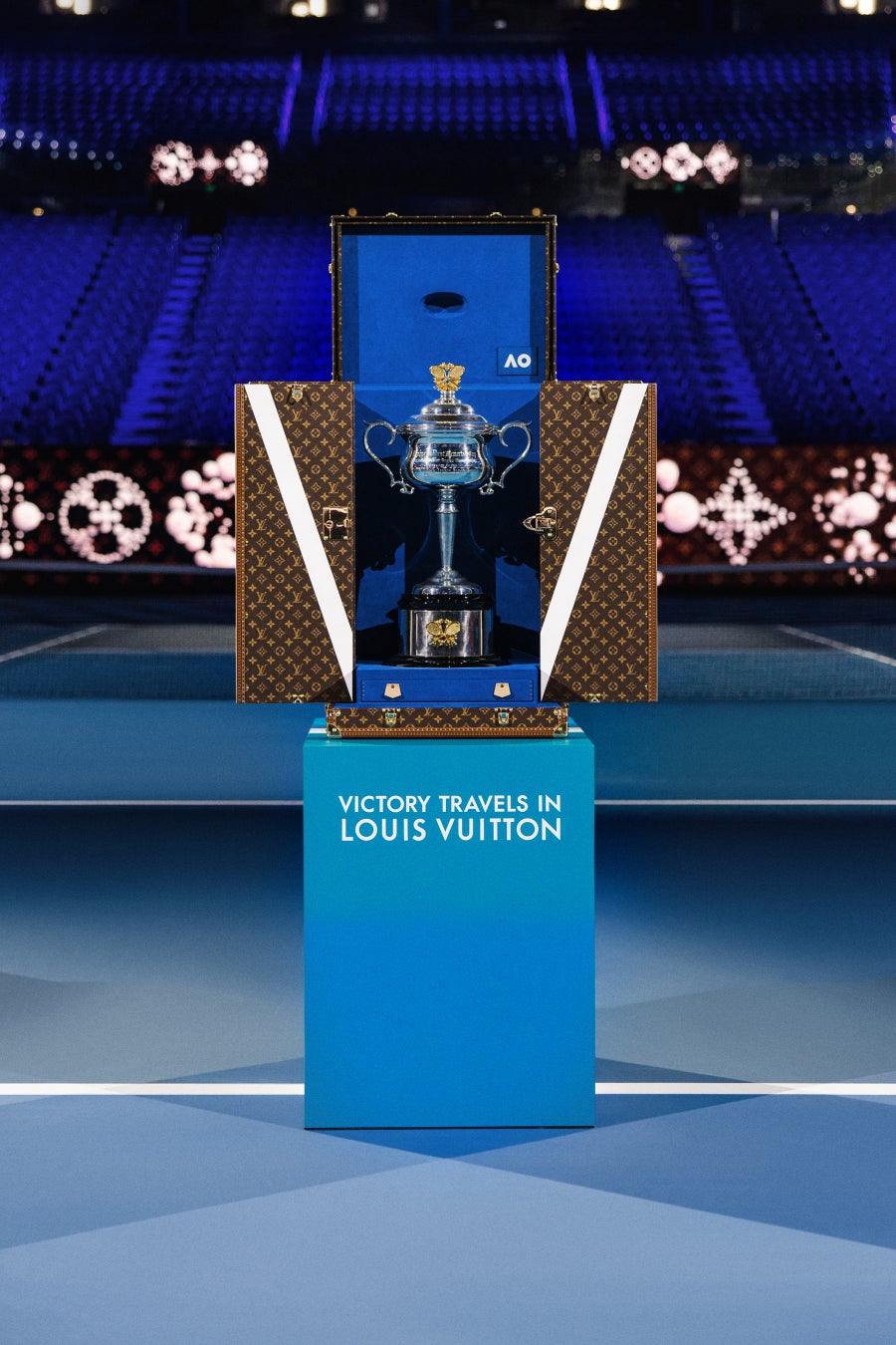 パリ郊外のアニエールにある歴史的なルイ・ヴィトンのアトリエにて、経験豊かな職人たちの手作業で製作されたこのトランクは、グランドスラムの幕開けとなる全豪オープンの初日から、トロフィーを大切に守り、運んできました。