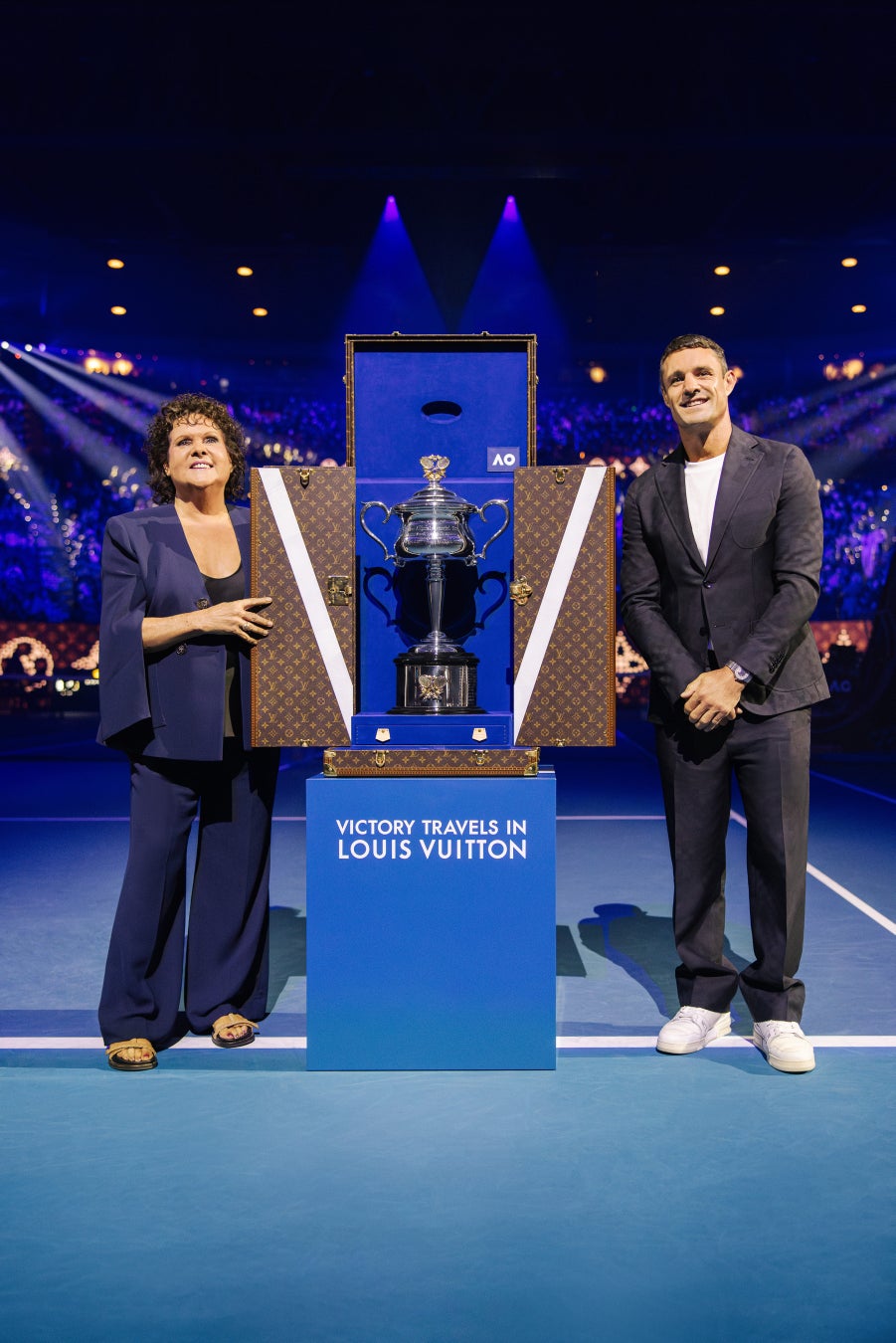 ダン·カーターはルイ·ヴィトンのトロフィー·トランクに収められたアイコニックな「ダフネ・アクハースト・メモリアル・カップ」のトロフィーを、テニス選手として、オーストラリア先住民のスポーツ選手としては初めて世界の舞台で成功を収めたイボンヌ·グーラゴング·コーリーとともに披露しました。