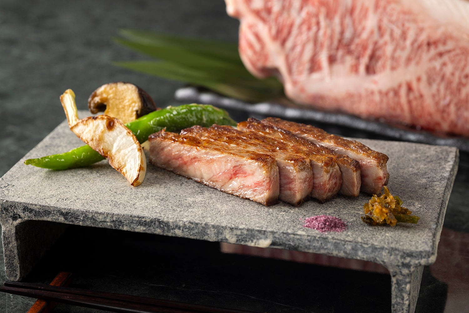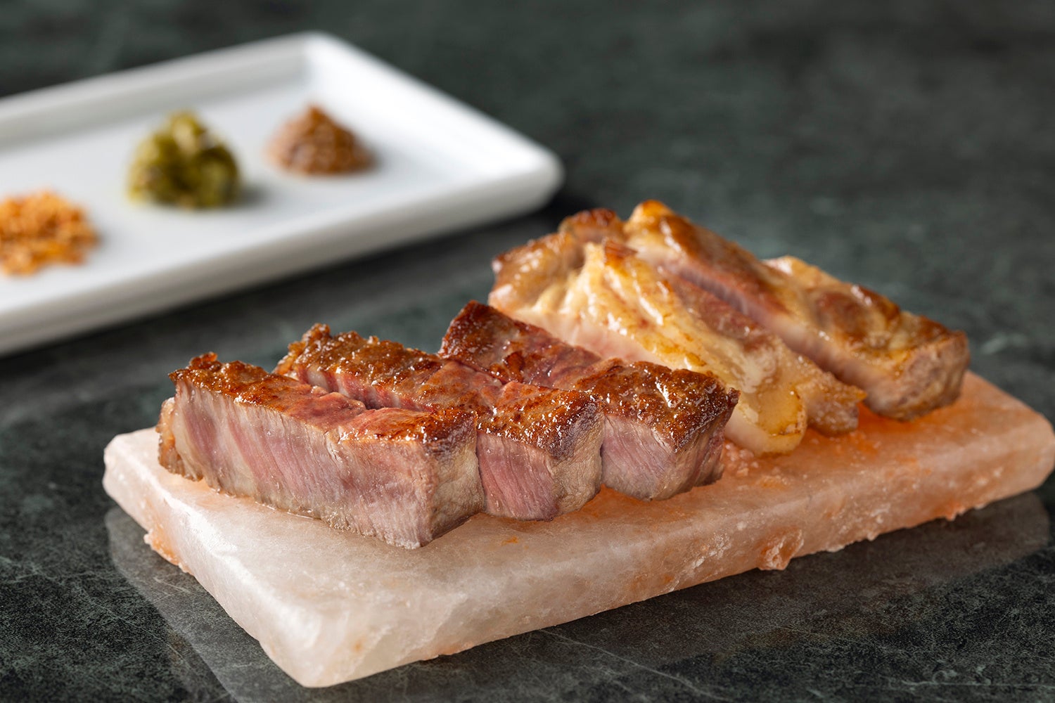 岩塩プレートで仕上げる岩手県産プラチナポークといわて短角牛