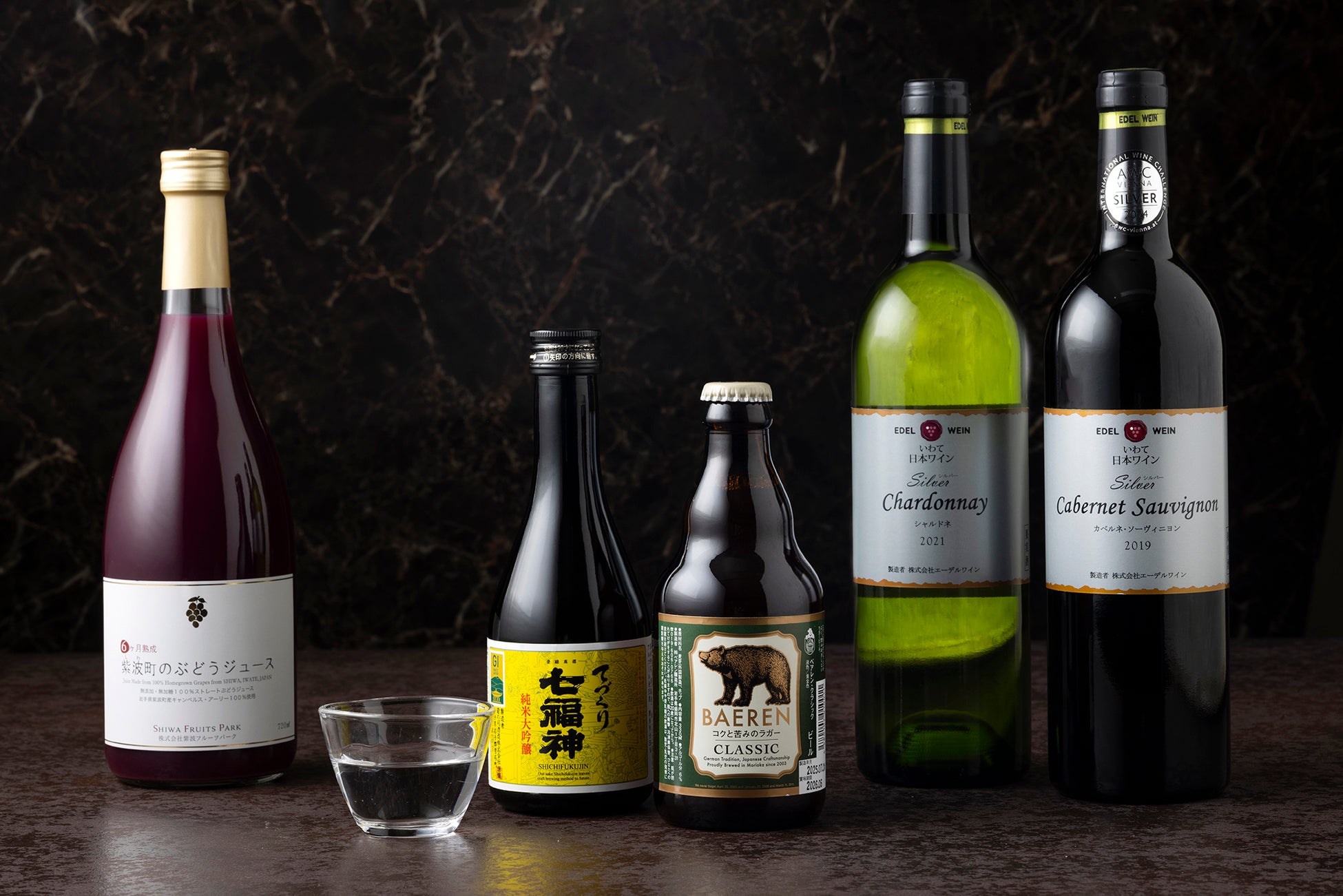 岩手県では、「南部杜氏」が受け継ぐ日本酒に加え、清らかな水と冷涼な気候を活かした多様な酒造りをしています。地元のぶどうを使ったワインや、さまざまなクラフトビールも人気があり、多彩な味わいをお楽しみいただけます。料理とのマリアージュを考えて揃えたお酒ですので、お食事と一緒に味わうひとときをお過ごしください。