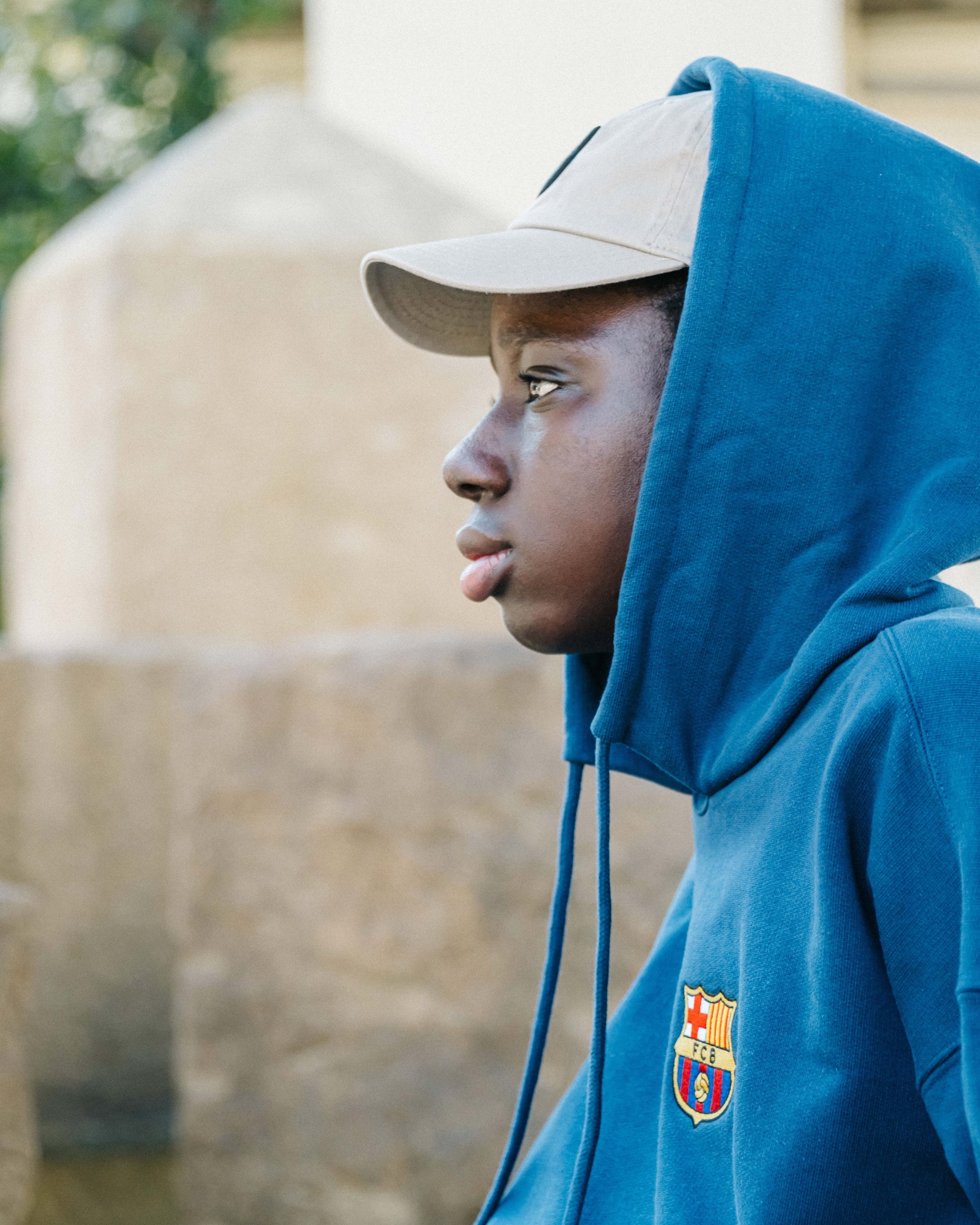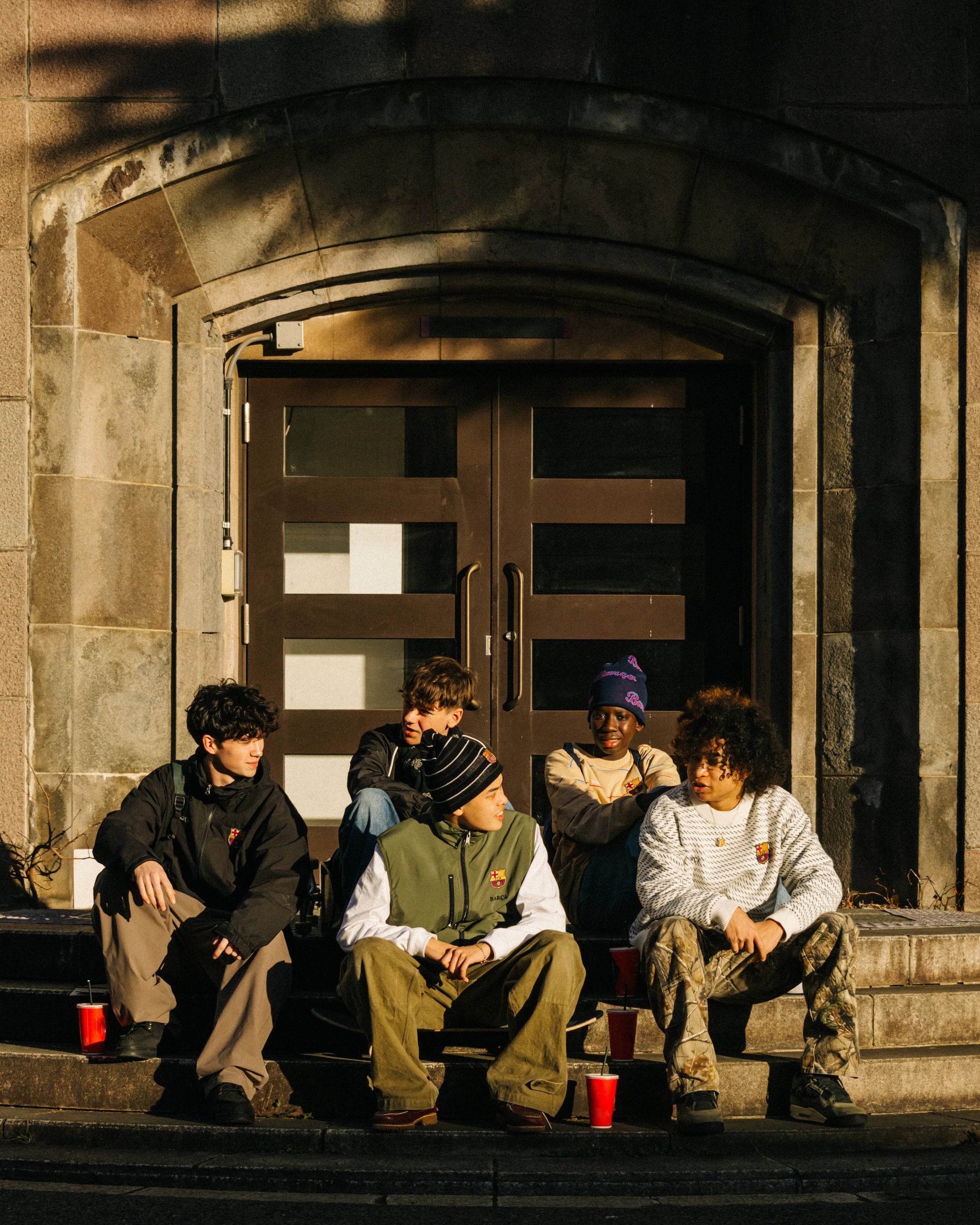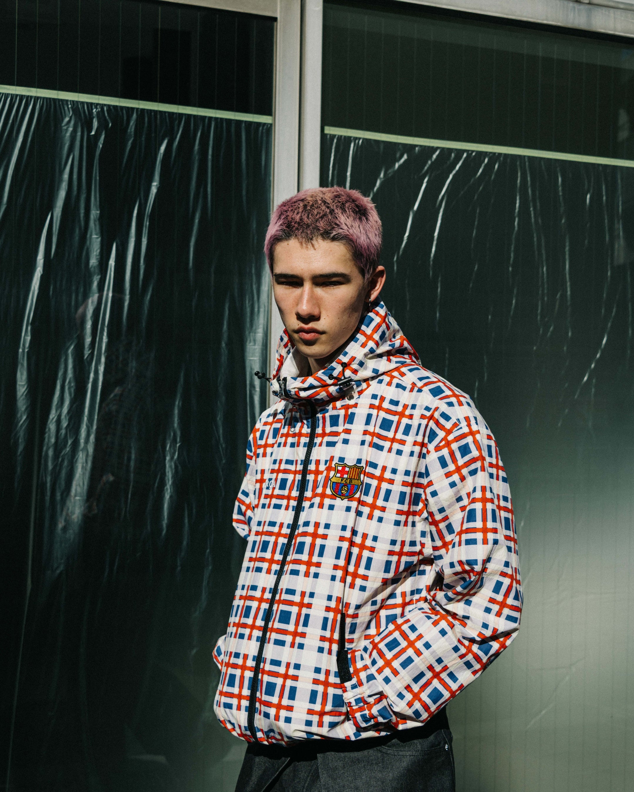 チームウェアを多様なスタイリングで提案することで、フットボールカルチャーを現代のストリートスタイルへと接続するビジュアルとなっています。