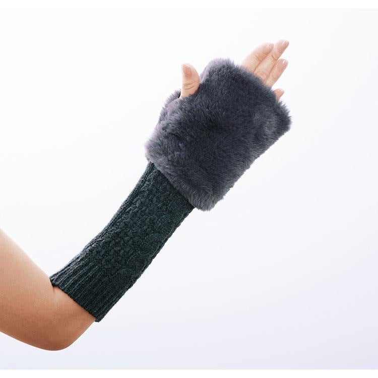 服の袖にワンポイントでつけることができるファーつきのアームニットカバー。袖口からの冷気を防ぎます。