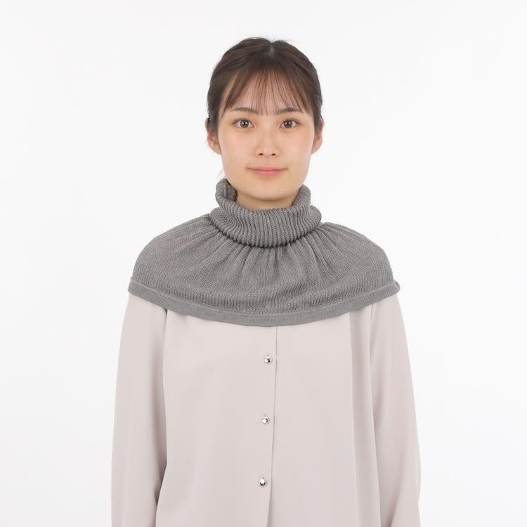 デコルテまで覆うゆったりサイズのネックウォーマー。冷えがちな首まわりを温めます。