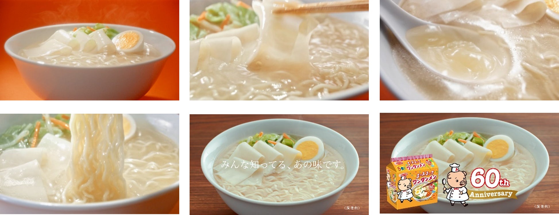 ① 60周年を迎え、ワンタンメンブランド初の「全編ワンタンメンの商品映像」での制作!誰しも思わずワンタンメンが食べたくなる、こだわり抜いた映像で表現。