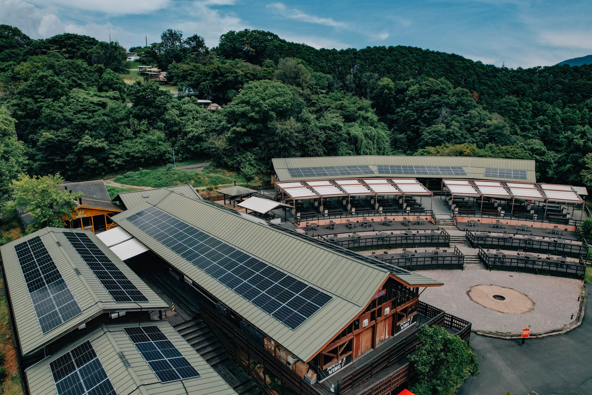 見込まれるCO2削減量は約220 t/年となり、杉の木25,000本が1年間に吸収する量と同等となります。また、さがみ湖MORIMORIの敷地内に設置する太陽光パネルはすべて既存建物の屋根に設置するため、相模湖エリアの自然へ対しての負荷はありません。