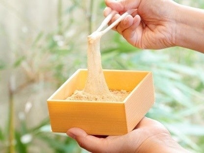 京都の嵐山に本店を構える〈京 嵯峨野 竹路庵〉。吟味に吟味を重ねた原材料を使い、独自の配合と製法によって特別に仕立てるわらび餅は、カットすることなく箱一面に流し込んでいます。お箸でたぐると切れることなくねっとりと伸びるやわらかさが特徴。