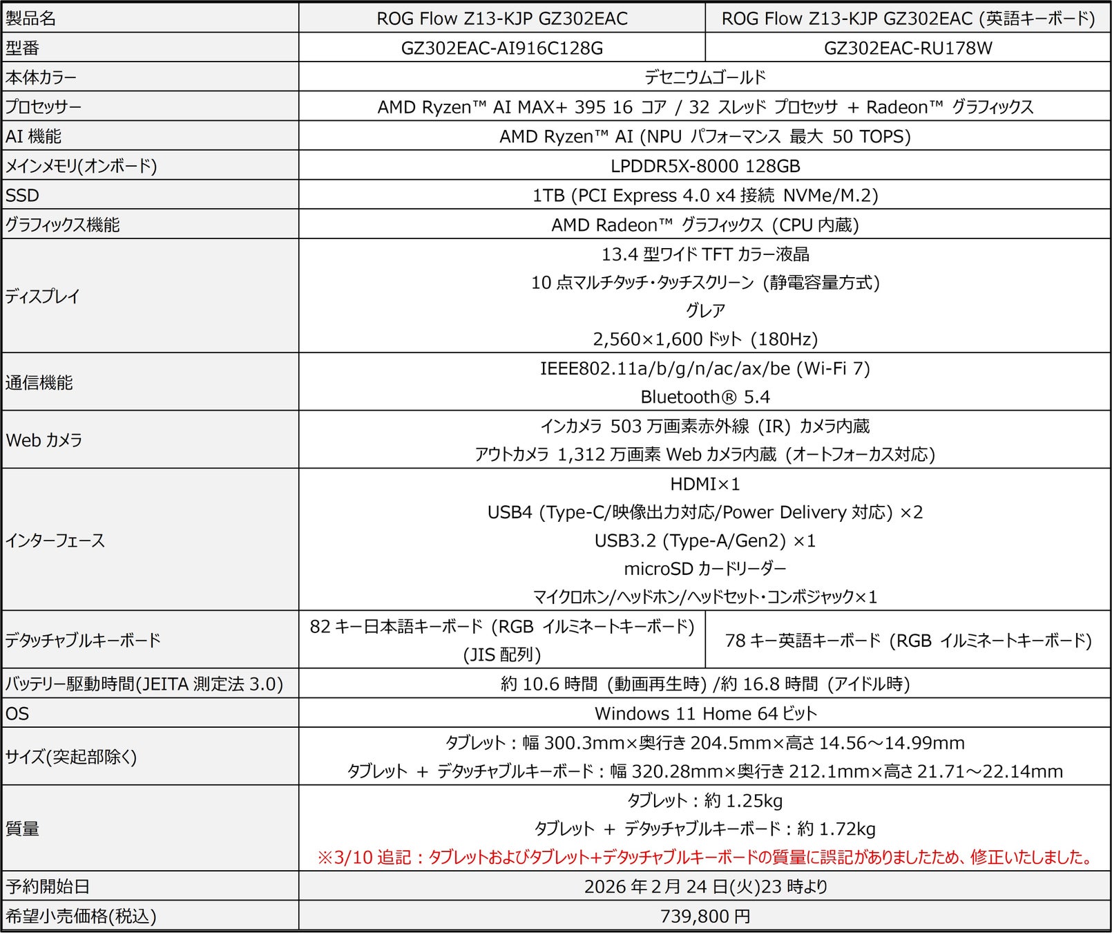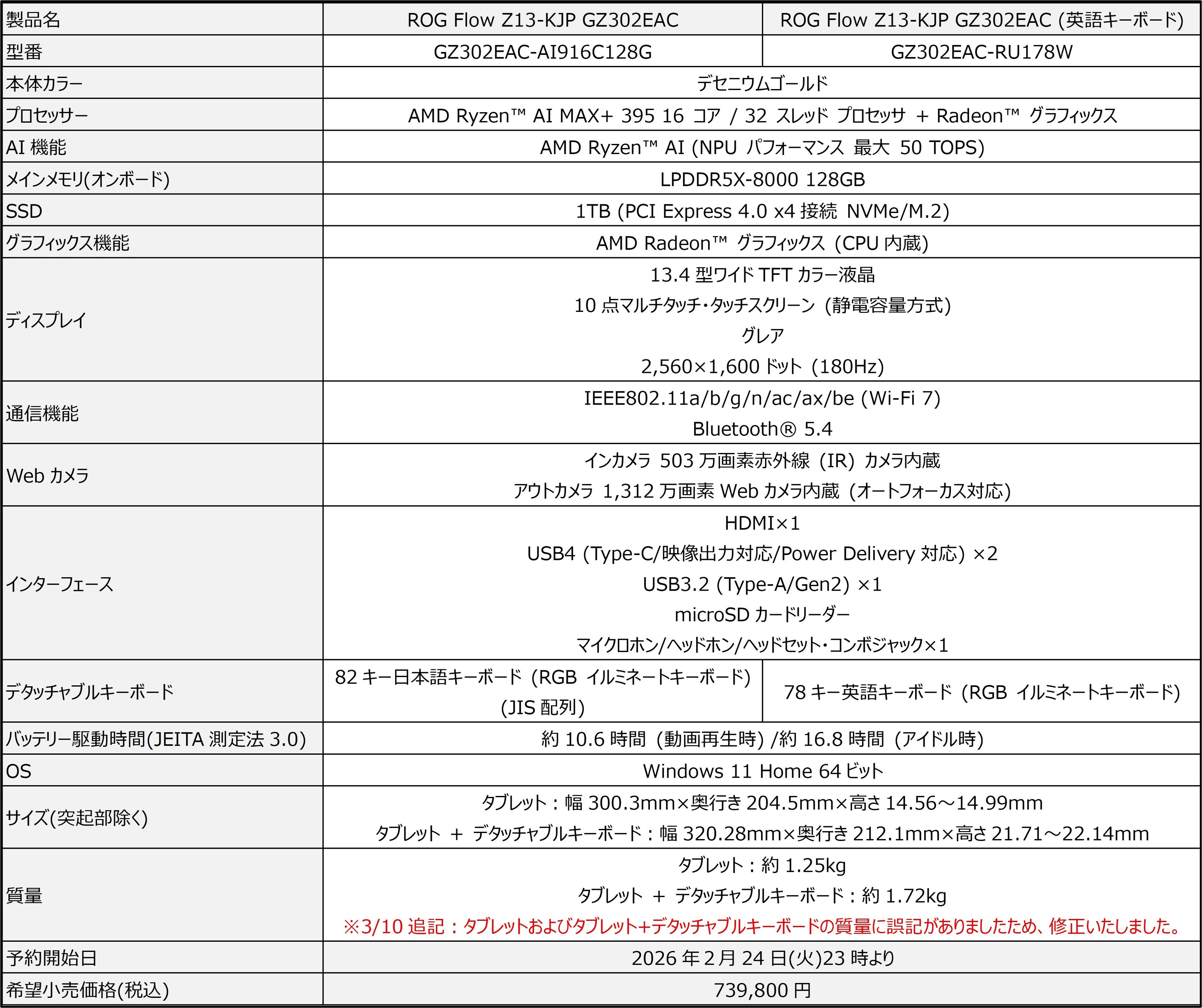 ※今回発表のROG Flow Z13-KJP GZ302EACの詳細スペックはこちらからご確認ください。
