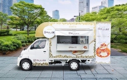 「BRULEE(ブリュレ)」のキッチンカー。「BRULEE」は厳選した国産の乳原料をたっぷり使用した濃厚なミルクアイスの表面を、オハヨー乳業独自の製法で焼き上げたプレミアムアイスです。