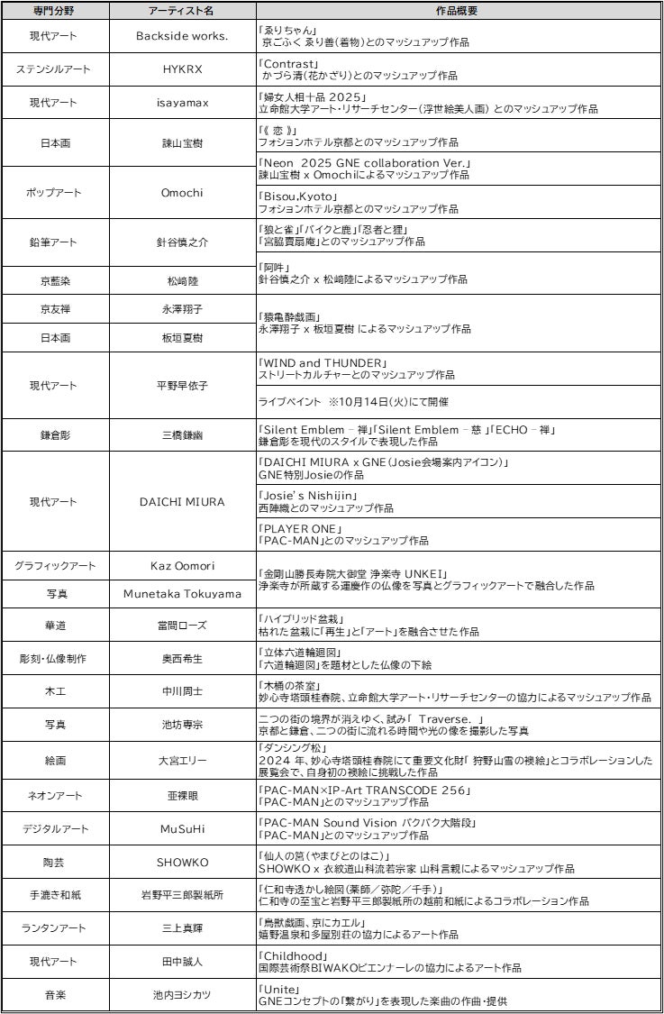 参加アーティスト・総勢全22組の情報を一挙公開。 現代アートや伝統工芸、音楽、デジタルがマッシュアップしたGNE新作アート作品の概要を初お披露目。参加アーティスト・総勢26組の情報も一挙公開。