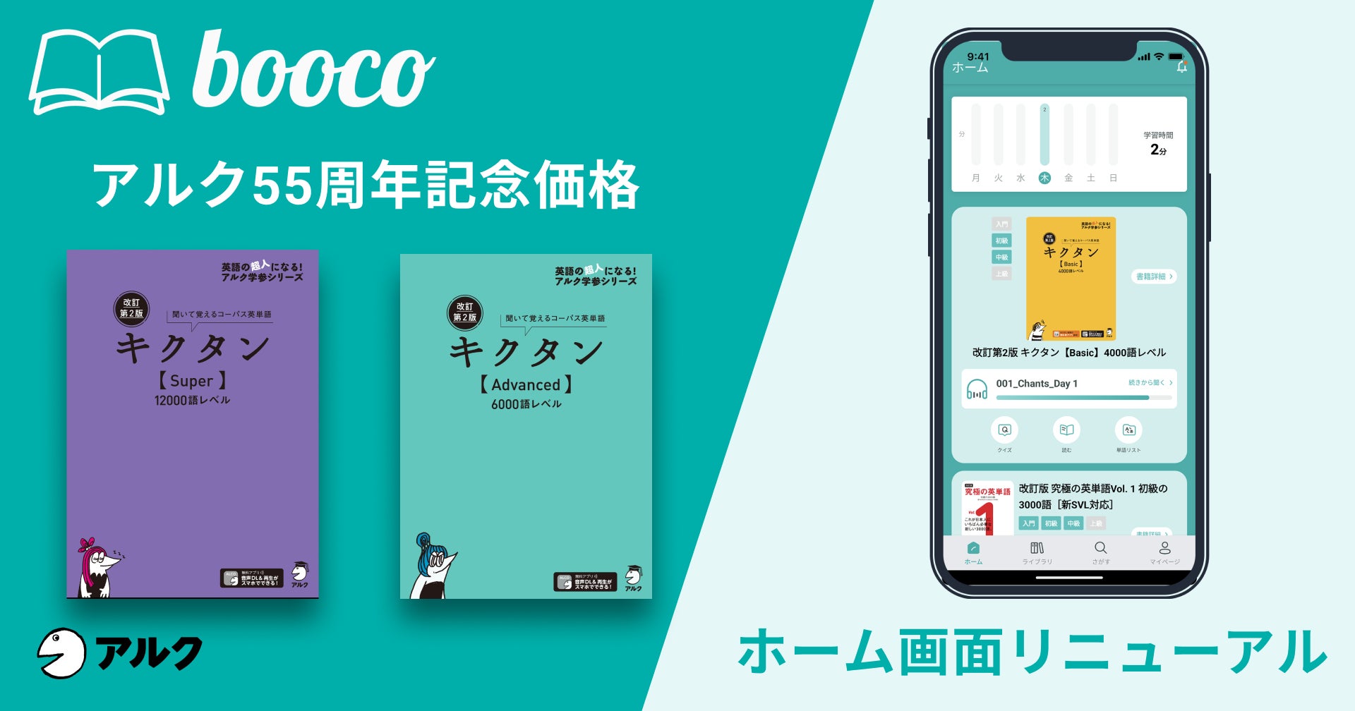 株式会社アルク(東京都品川区 代表取締役社長:天野 智之、以下アルク)は、当社の参考書や問題集をスマートフォン一つで学習できるアプリ「booco(ブーコ)」のホーム画面を一新し、より使いやすい学習環境を実現いたしました。(※1)