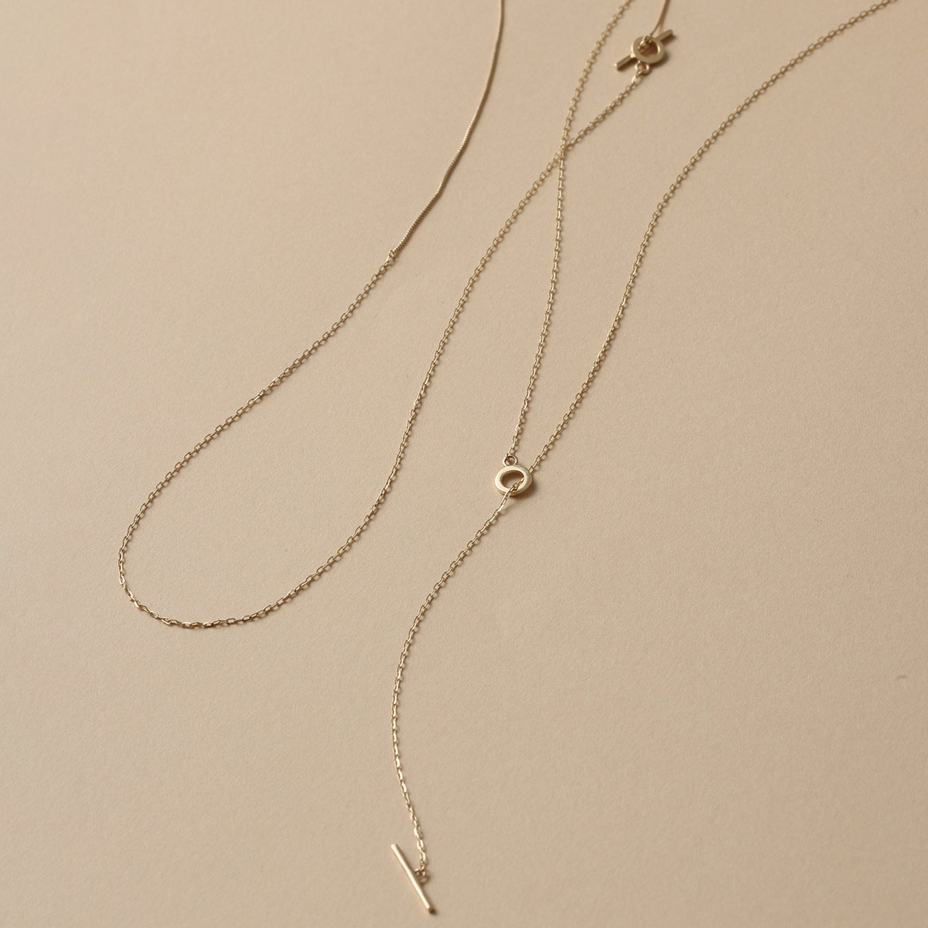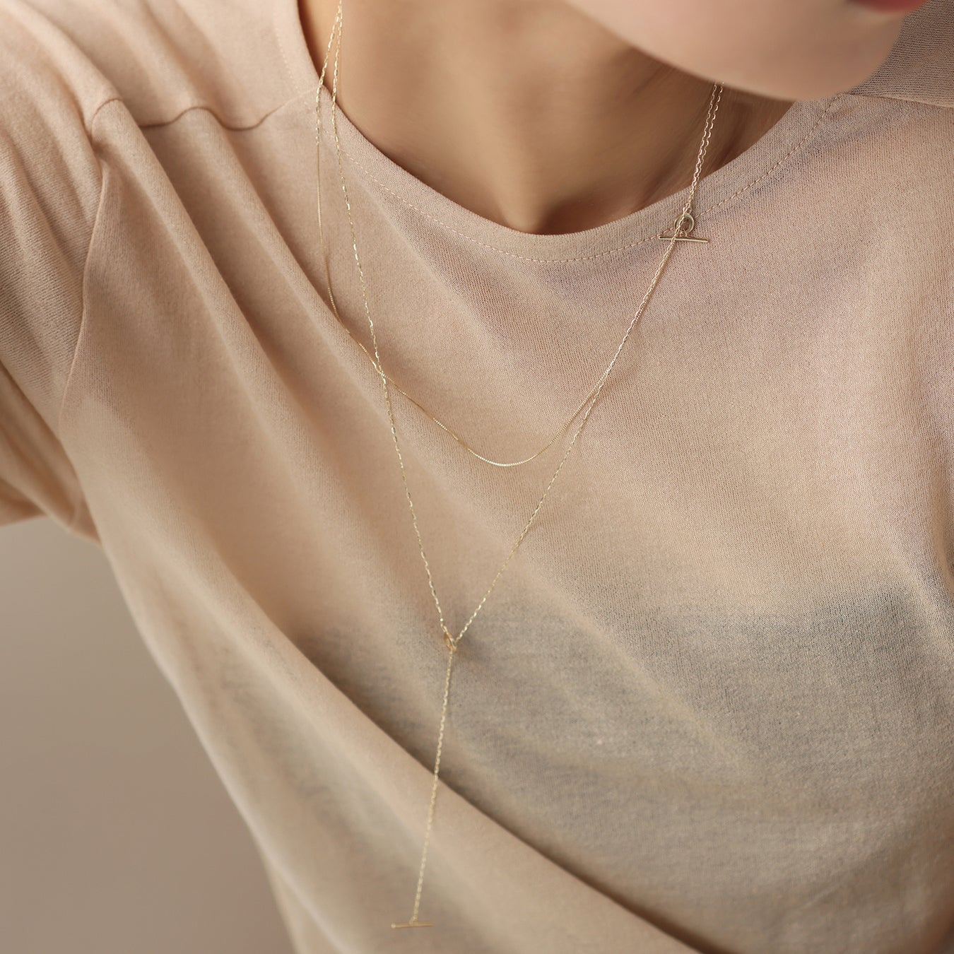 Tバーをあしらったネックレスは45cmと60cmの2種類を展開。