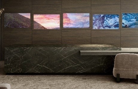 特殊な化粧シートによってディスプレイの存在を隠しながら、従来同様のコンテンツ表示を可能にした新世代のディスプレイシステムです。本展示会では、より高精細な映像表現が可能になるLEDタイプを出展します。